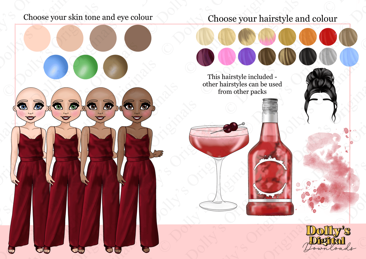 Instant digital download of our Cherry Sours Cocktail Dolly Character Bundle PNG (35 PNG’s)