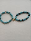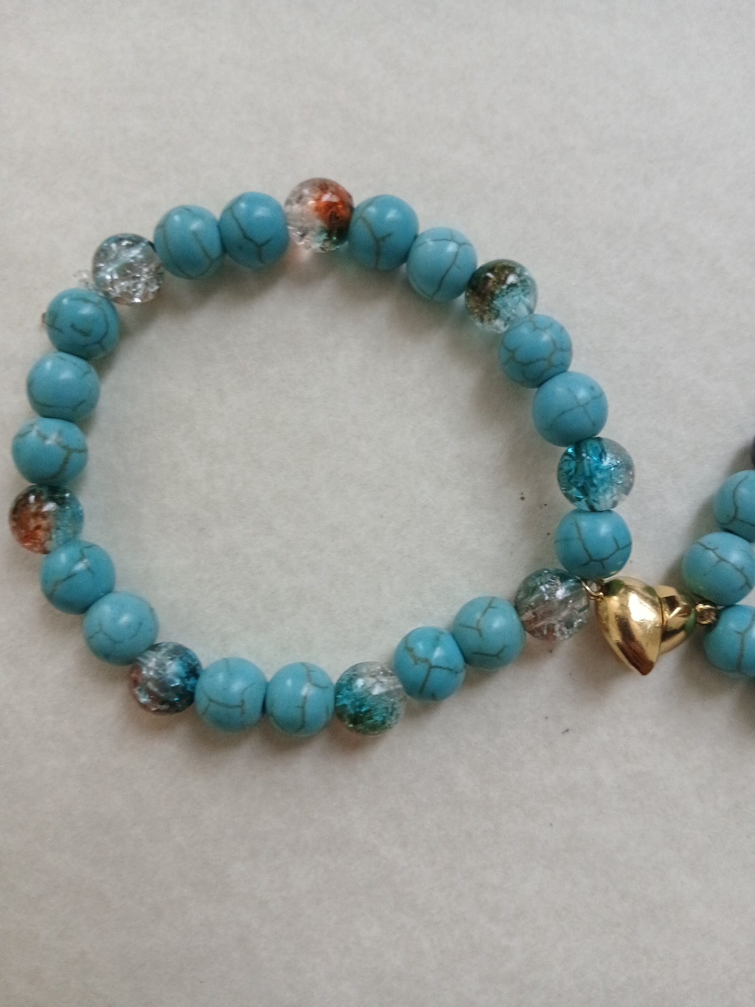 Set of 2 friendship bracelets with golden metallic magnetic heart charm.