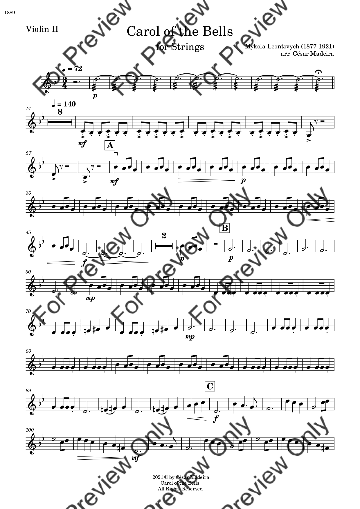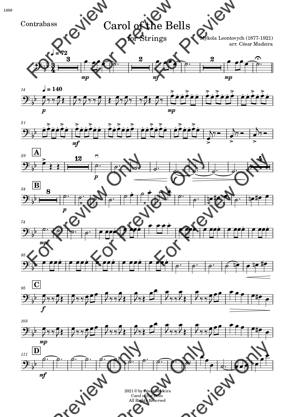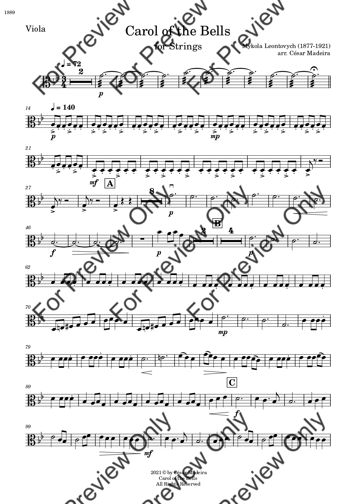 Carol Of The Bells by Mykola Leontovych. Arrangement for String Orchestra - Violin 1, 2, Viola, Violoncello and Contrabass. With Full Score and Individual Parts. Have fun!
