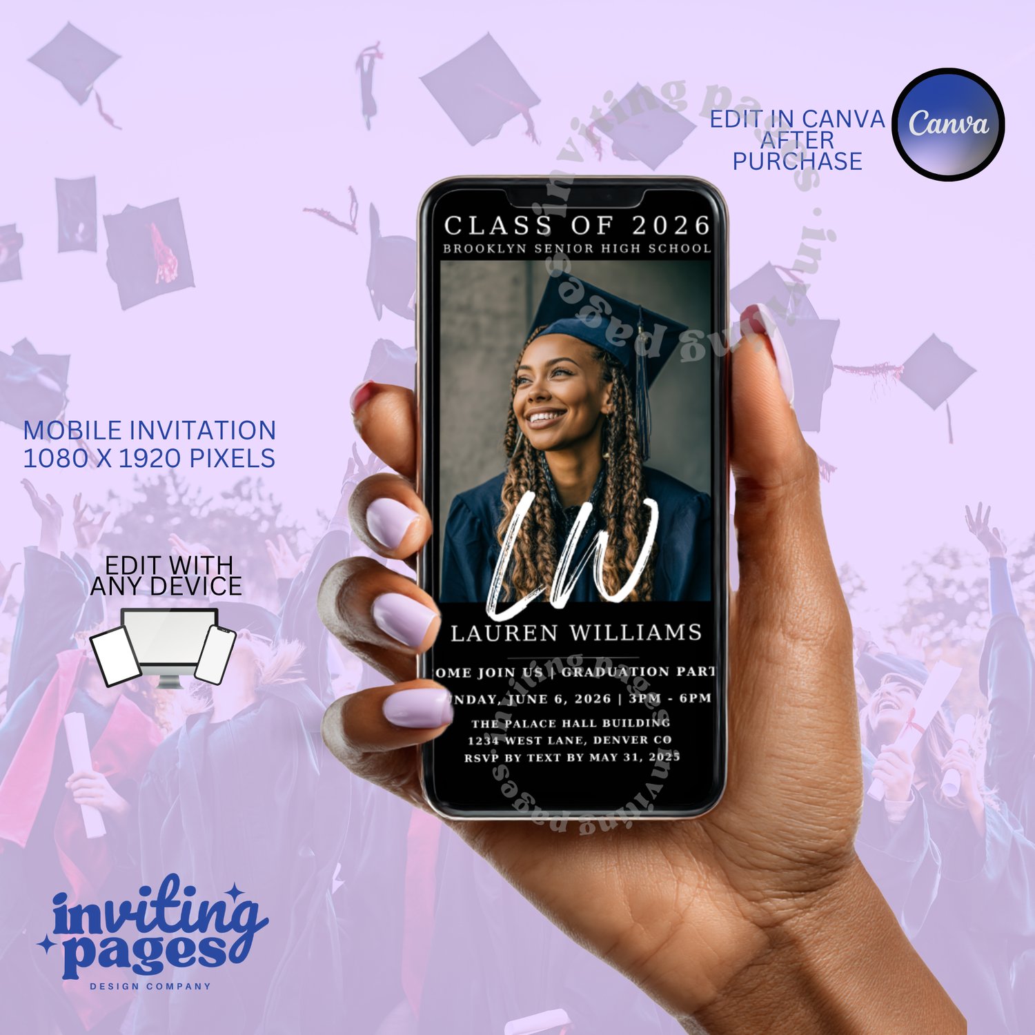 - 1 Mobile Graduation Invite Template (Editable via Canva)