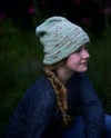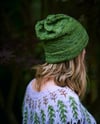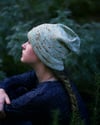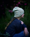 This hat was designed to be part of a bundle with the Herbaceous pullover. The stretchy folded brim is worked in a faded rib, an element borrowed from the ribbing of Herbaceous. The main area of the hat is worked in staggered knot stitches, which are used in the body of Herbaceous. Symbolic of the buds of various herbs, these knot stitches offer a delicate texture that is like a small bobble, only easier to work