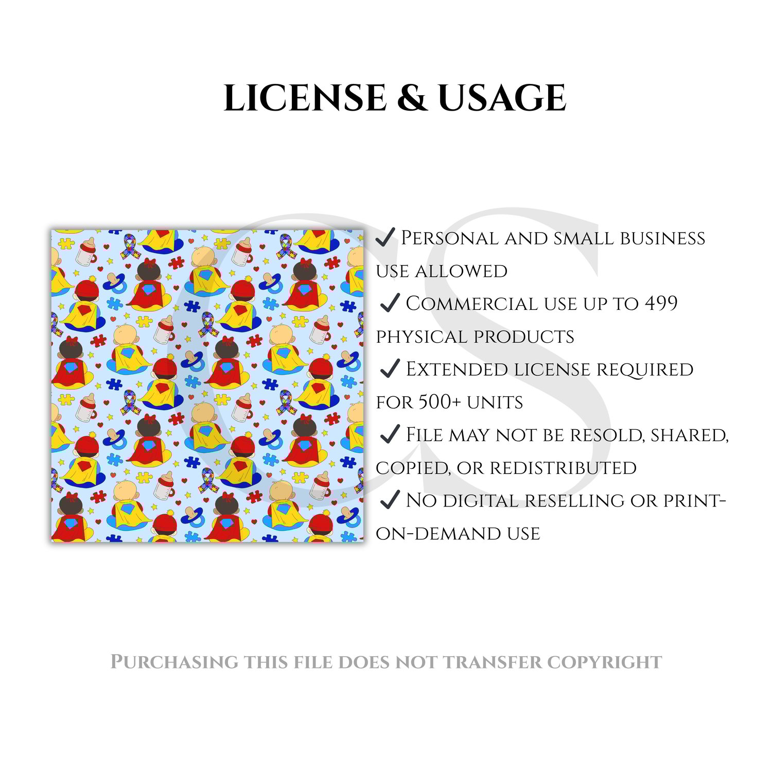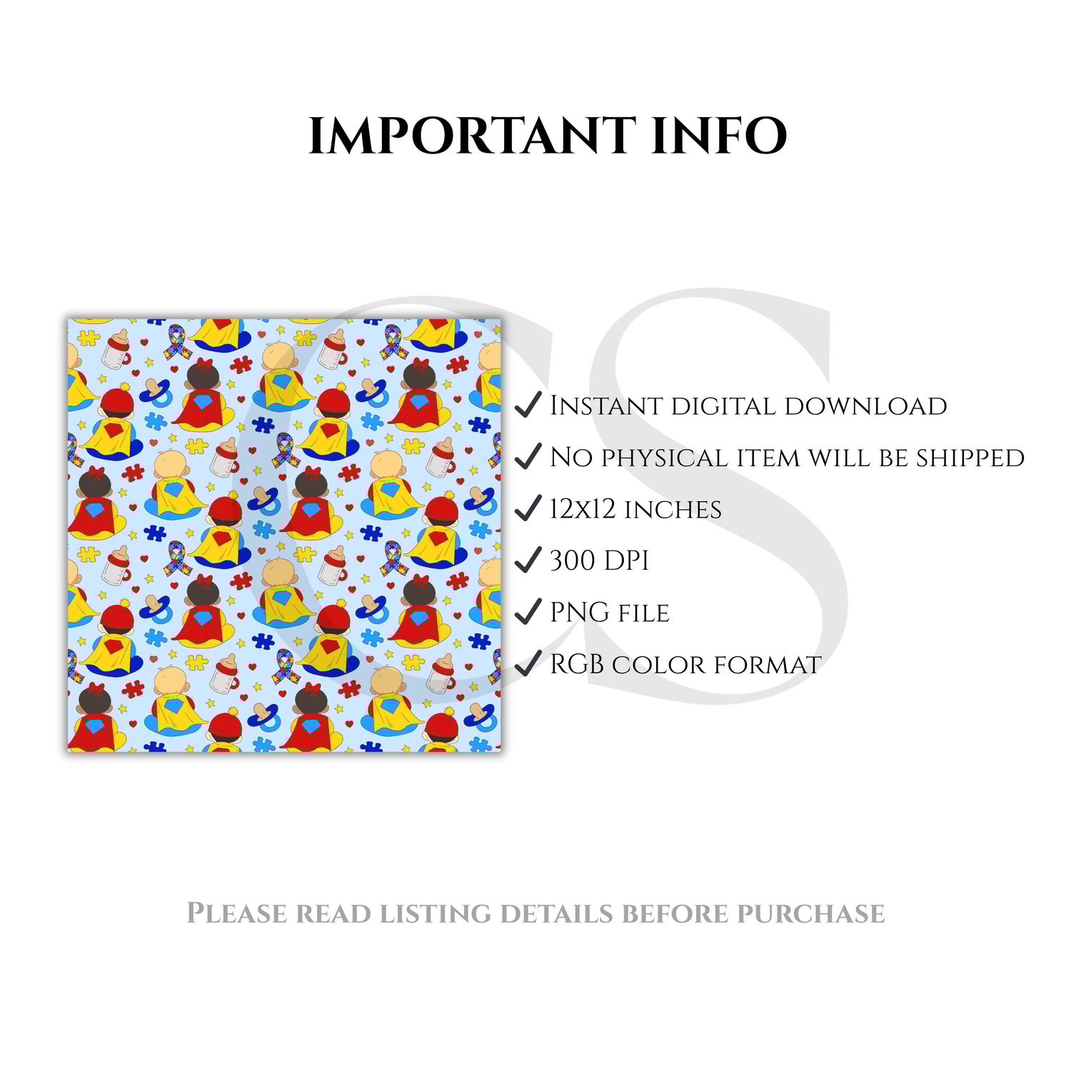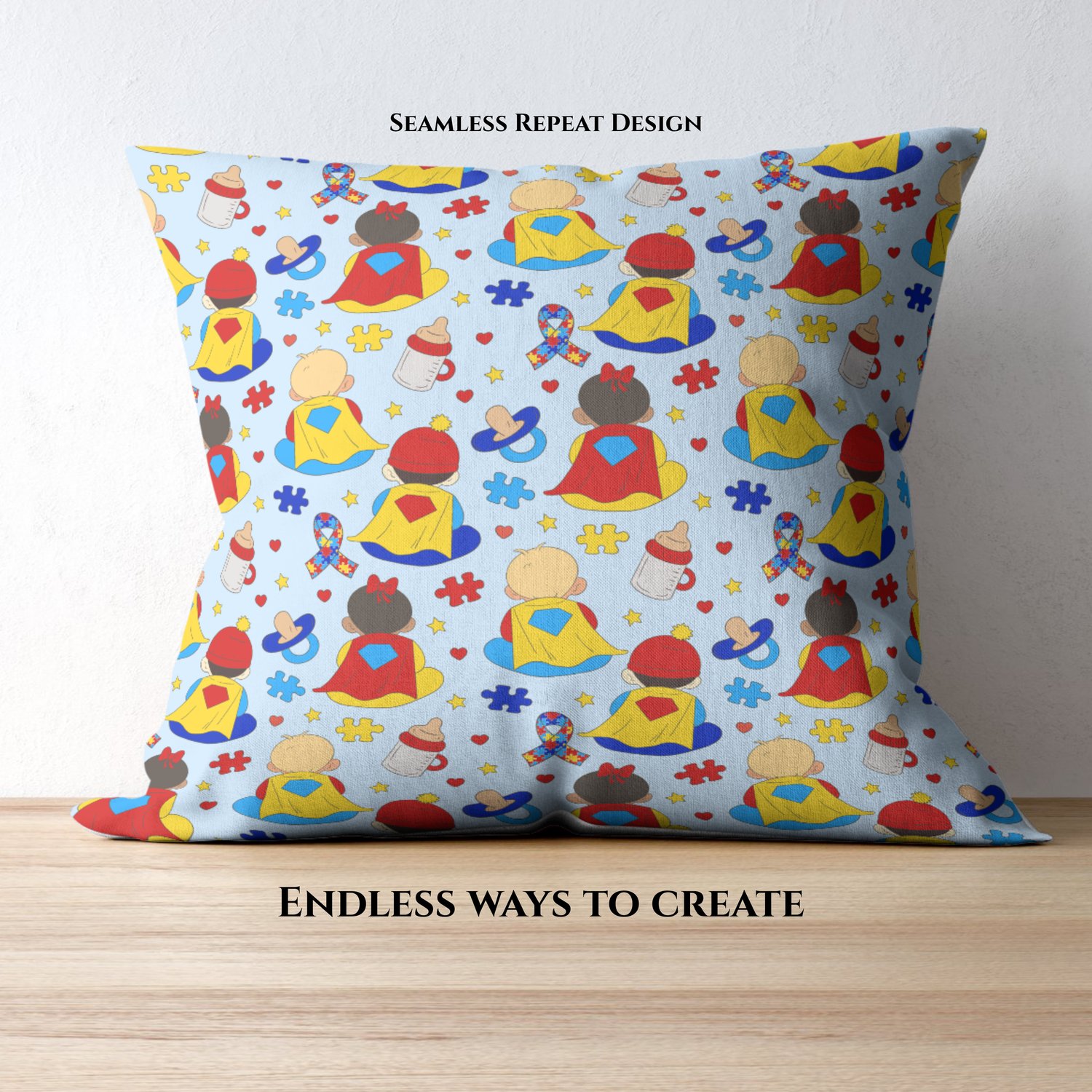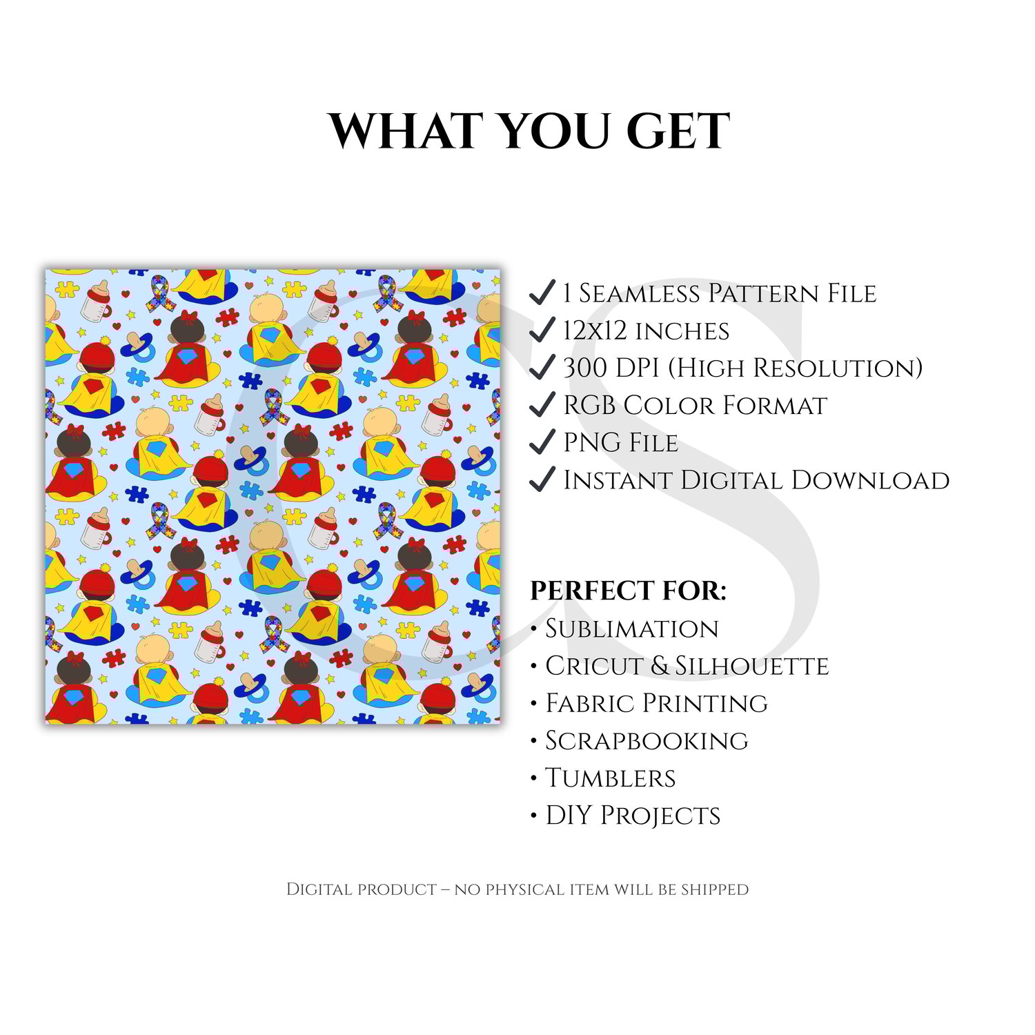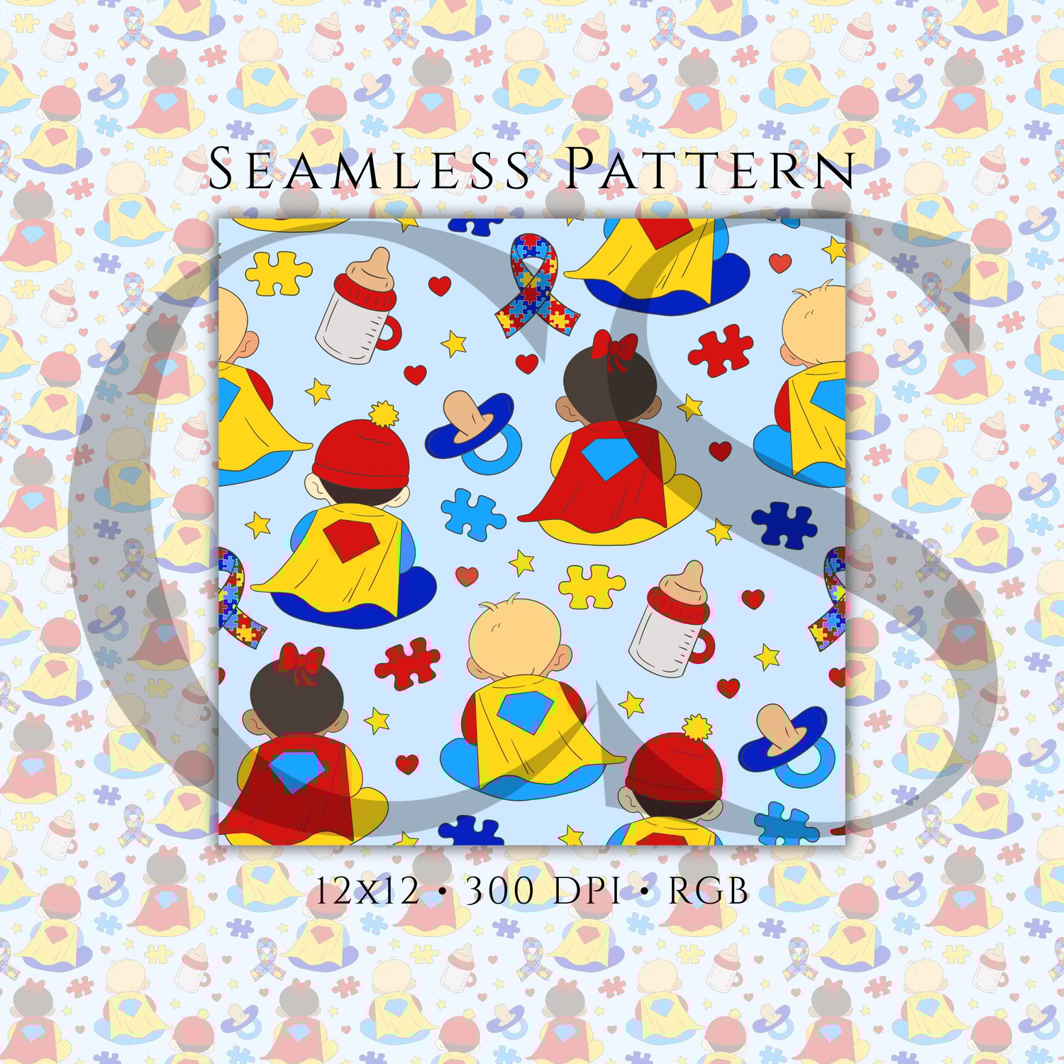 Autism Awareness Superhero Kids Seamless Pattern PNG (12x12)