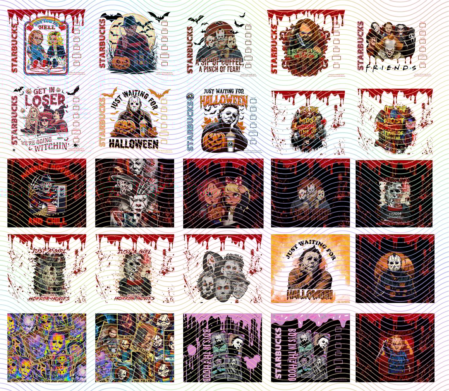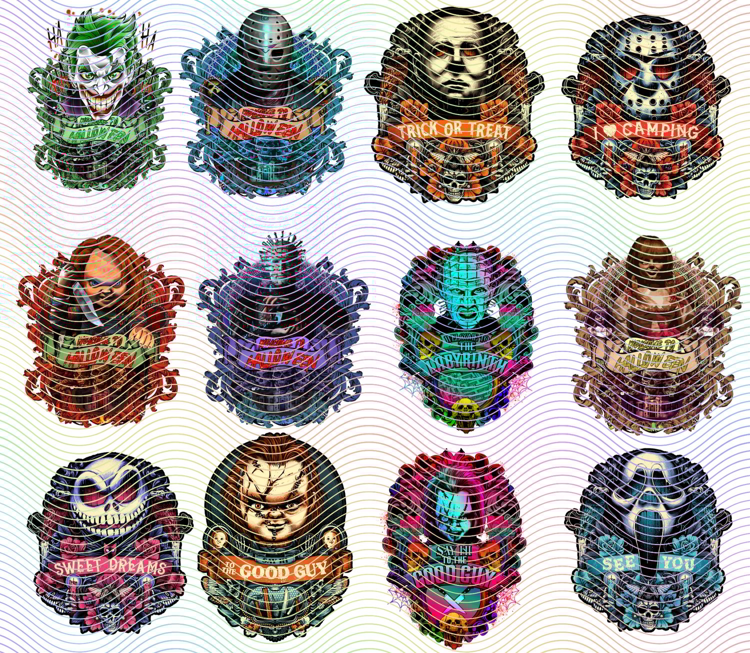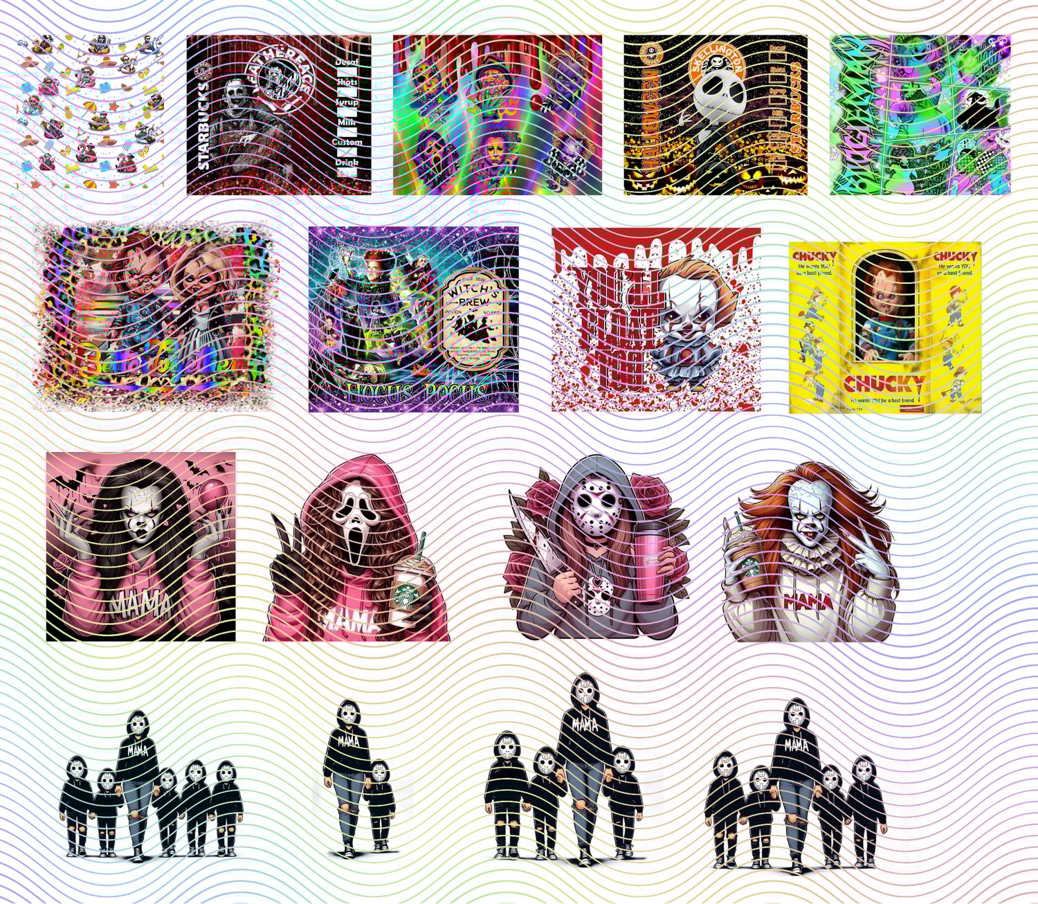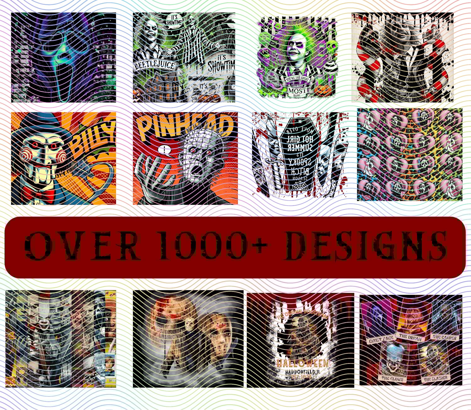 Halloween 1000+ Files, Tumbler wraps, Villains Bundle Png, Png, Horror Movie Png, Sublimation Designs. You will get the designs images without the watermark.