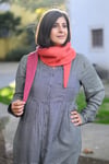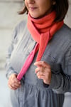 Inspired by the Pompelmo (grapefruit) this shawlette features a bright orange on one side and a warm pink on the other. This shawl is knitted using the double knitting technique meaning that the whole piece is in stockinette stitch with one side of each color. The shawl is worked from side to side meaning we begin the shawl at one end, with only 6 stitches, and work with increases to the center of the shawl. Then we work with decreases until the end. The photos feature the size 2 of the shawl.