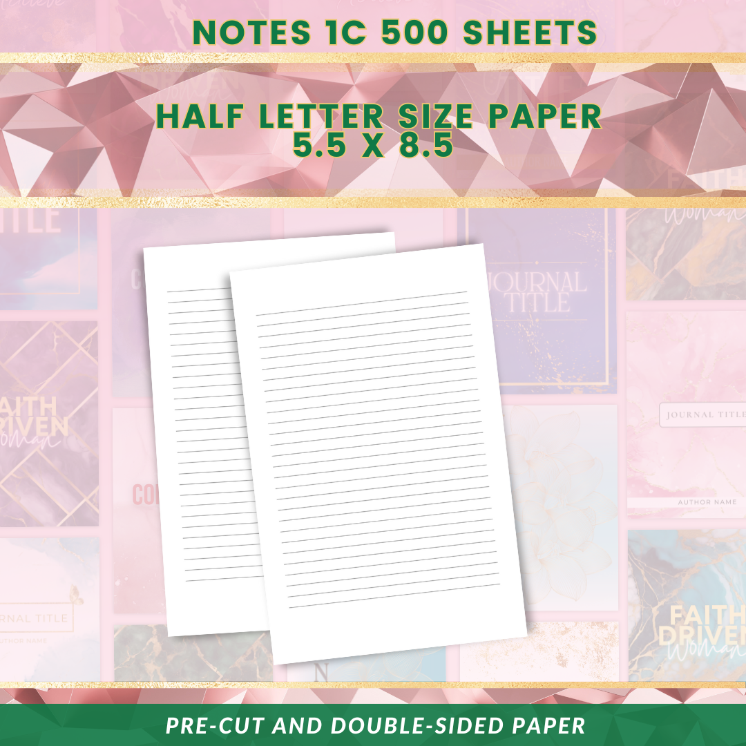 Elevate your journal-making with this premium 500-sheet Half Letter paper bundle, perfectly pre-cut to 5.5 x 8.5 and printed double-sided for fast, professional production. Every pack is crafted for creators who want polished interiors without the extra work of cutting, resizing, or formatting.