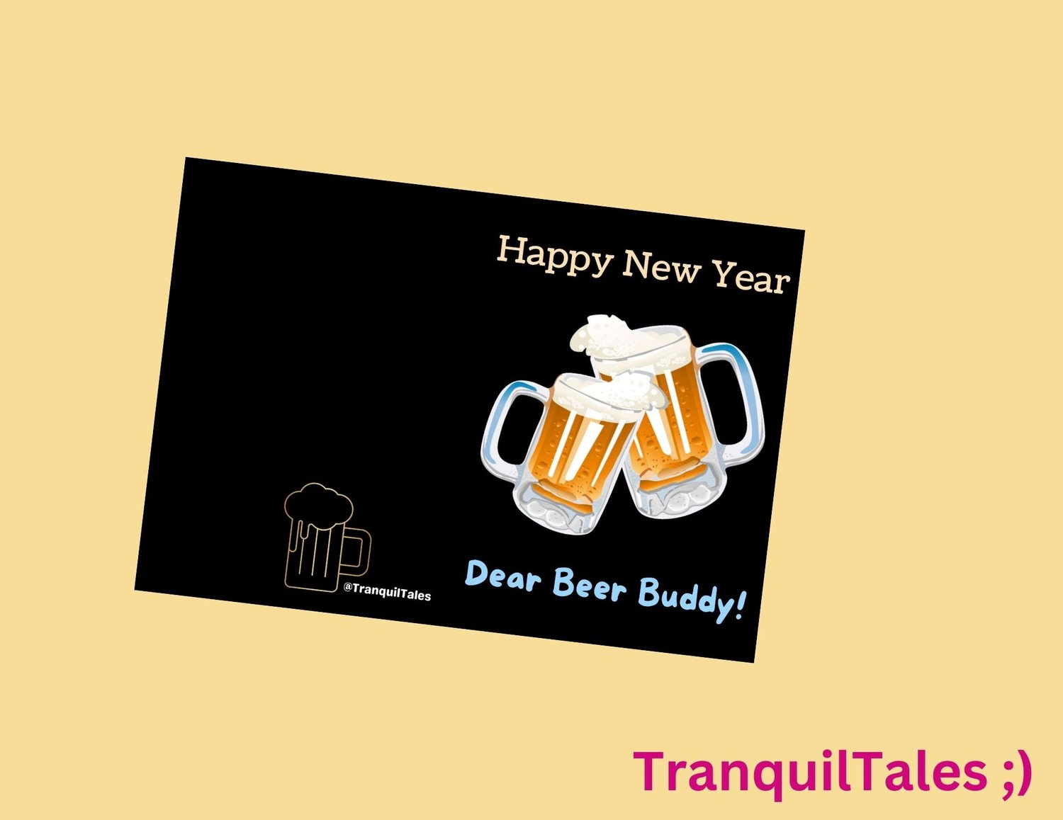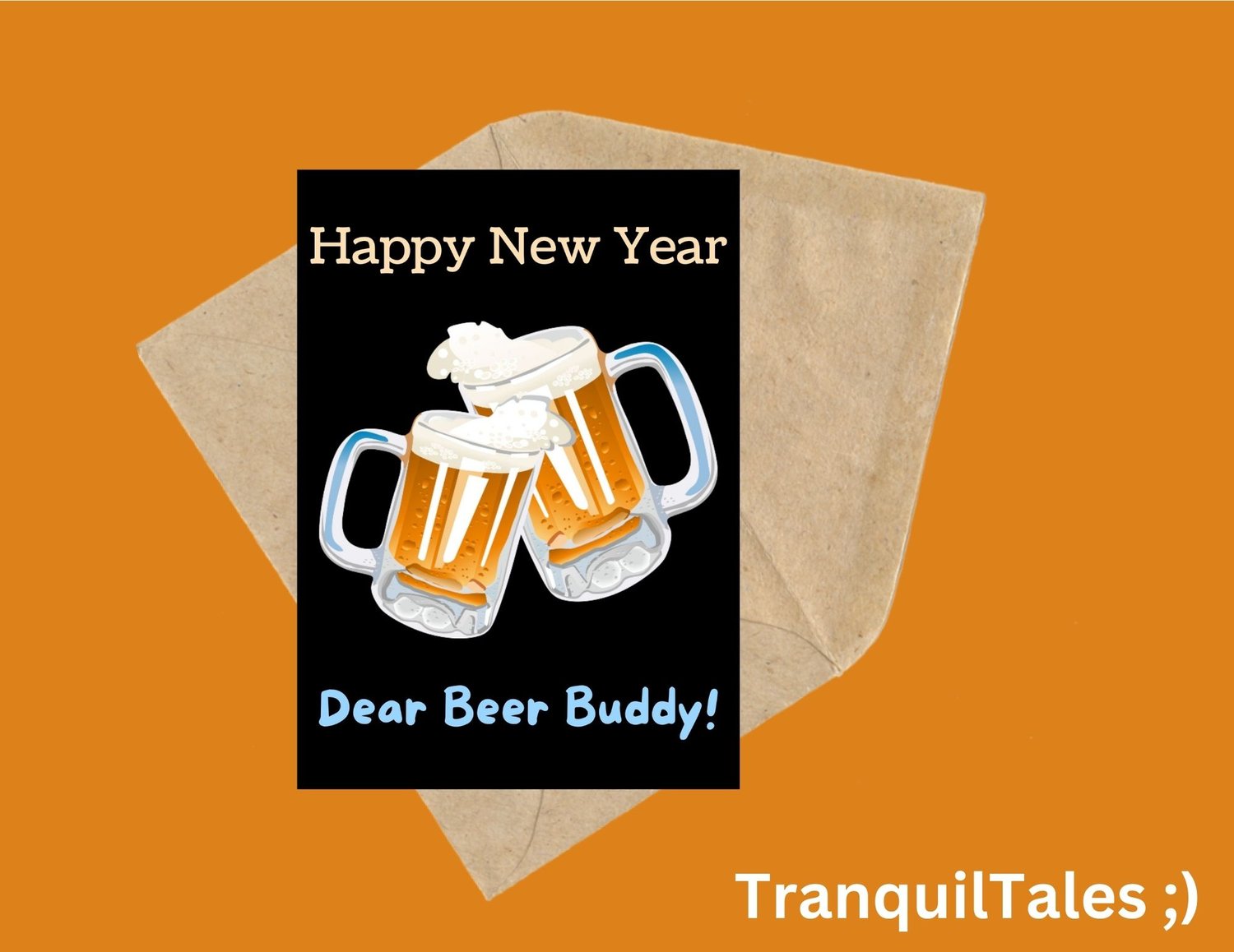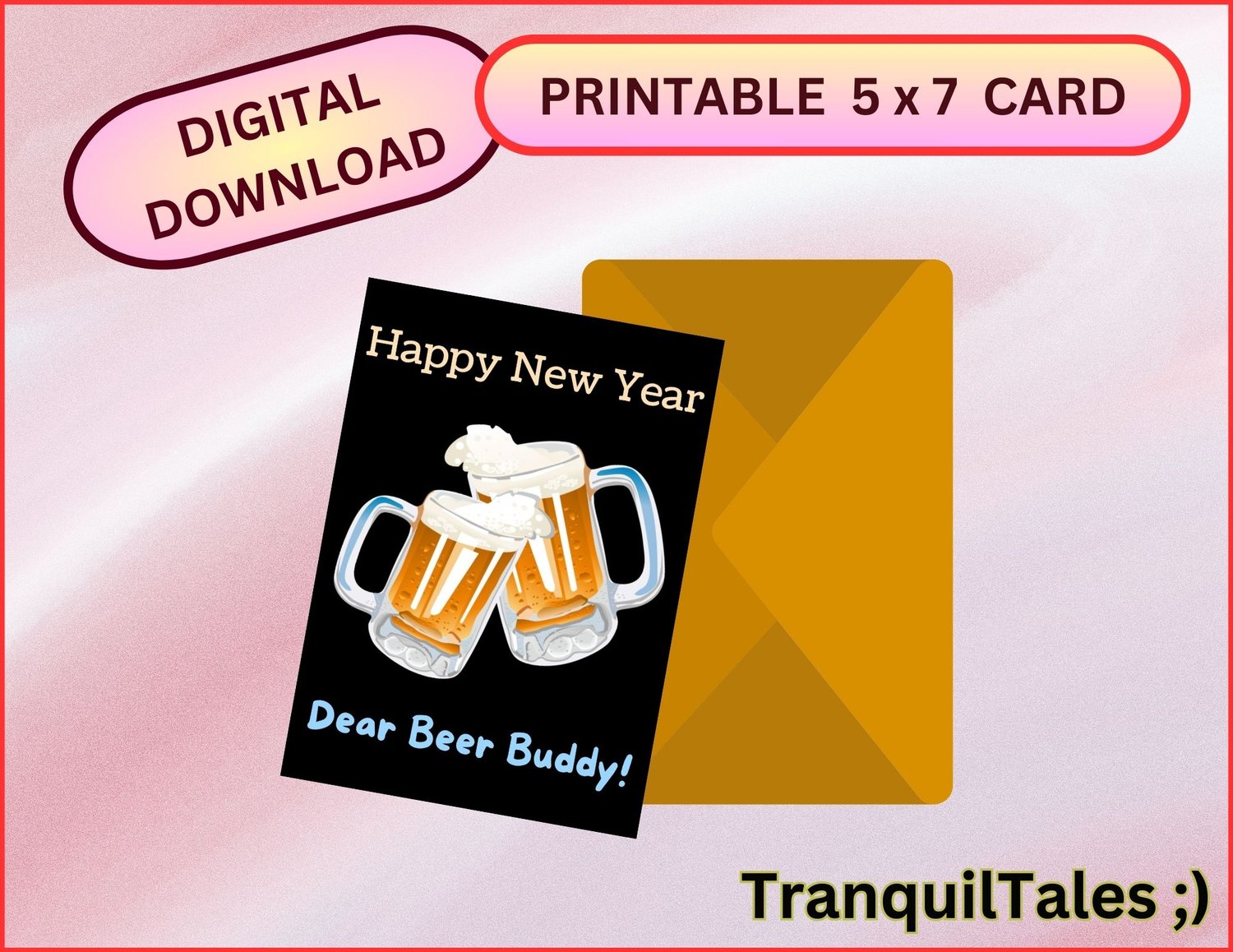 Happy New Year - Dear Beer Buddy! Card - 5" x 7" inches - New Year card - PDF File