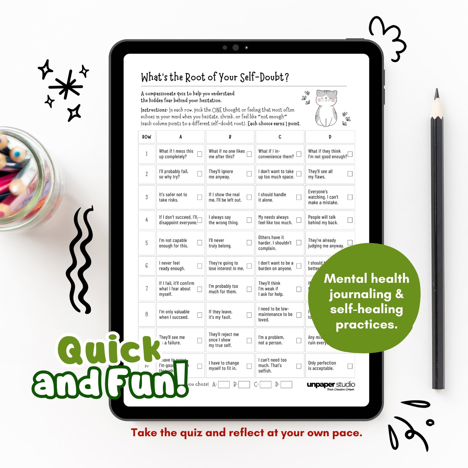 Do you struggle with self-doubt, overthinking, or fear of failure? This gentle, printable personality quiz helps you uncover the hidden fear behind your hesitation—so you can move forward with clarity, courage, and self-compassion. Perfect for inner healing, reflection, and personal growth routines.