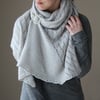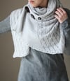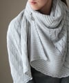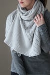 Asymmetrical sections of texture and triangle lace combine to make Mirkfallon, a rectangular wrap with a clean, modern style.