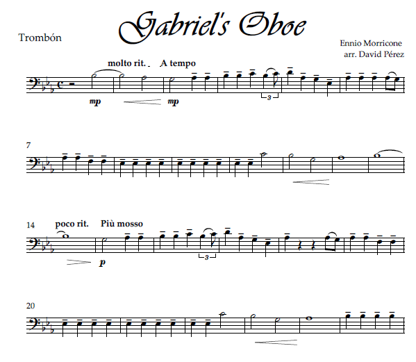 Gabriel's Oboe for medium-small Brass Ensemble.