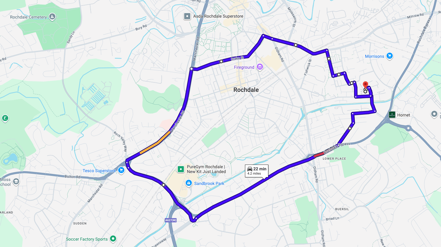 Practise real driving test routes in Rochdale (Manchester) before your exam – open directly in Google Maps