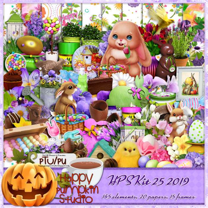 145 elements,15 frames and 20 papers This kit has a cute rabbit ©Yuki that is excluisve to my kit. Its full of fun and cute elements for spring or easter or more.
