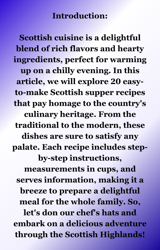 RECIPE E-BOOK (zip png) 20 Delectable Scottish Meal Recipes A Culinary Journey Through the Highlands