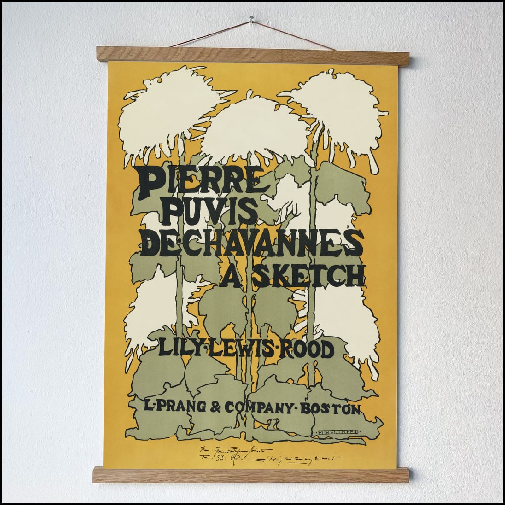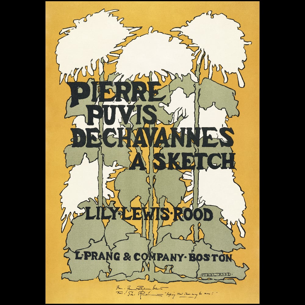 Pierre Puvis De chavannes, a sketch Lily Lewis Rood (1895) book cover of flowers in art nouveau style in high resolution by Ethel Reed.
