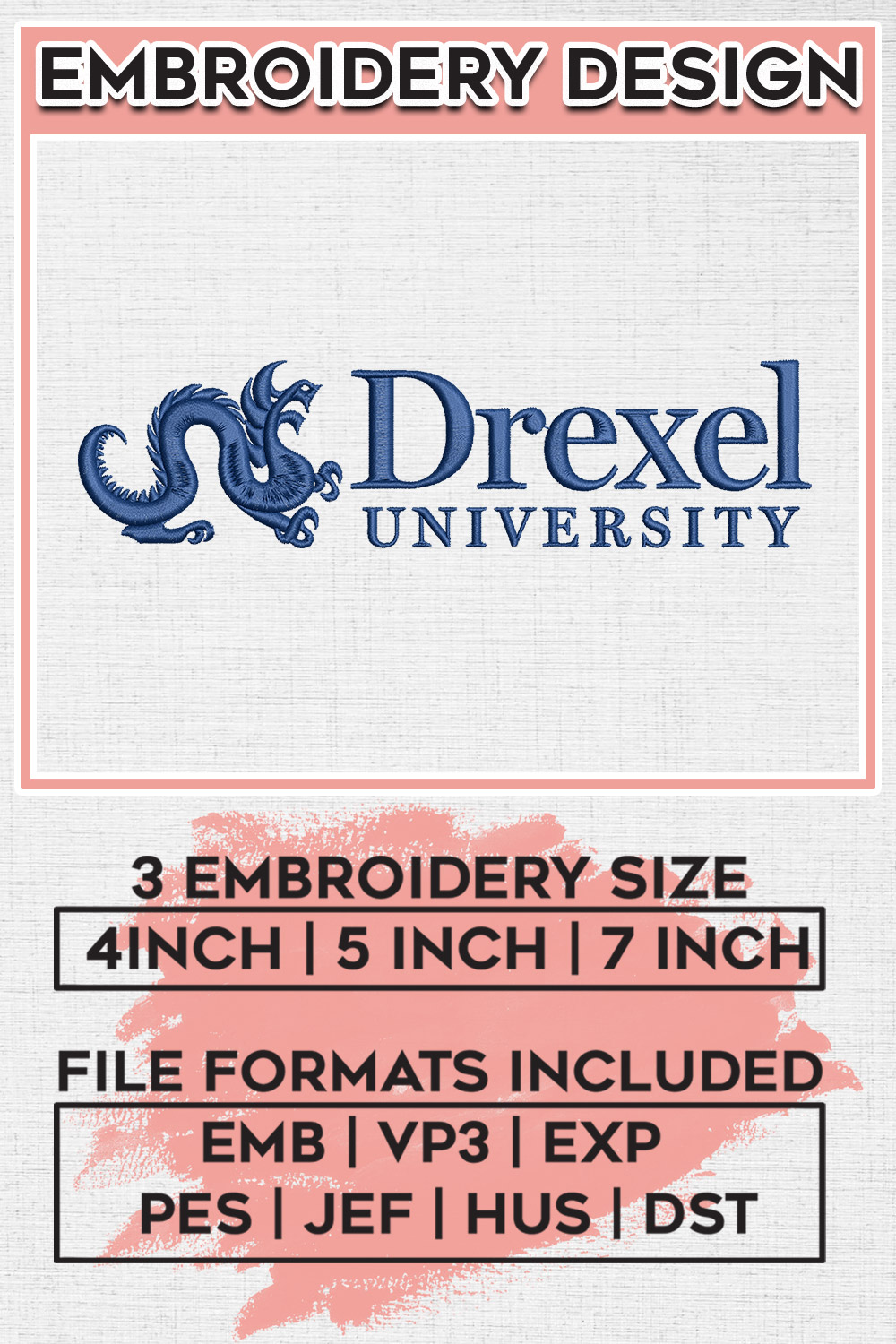 NCAA Drexel Uni Football Team Logo Embroidery Designs, NCAA Drexel Dragons Team Embroidery Designs, NCAA Logo embroidery designs, Digital Download