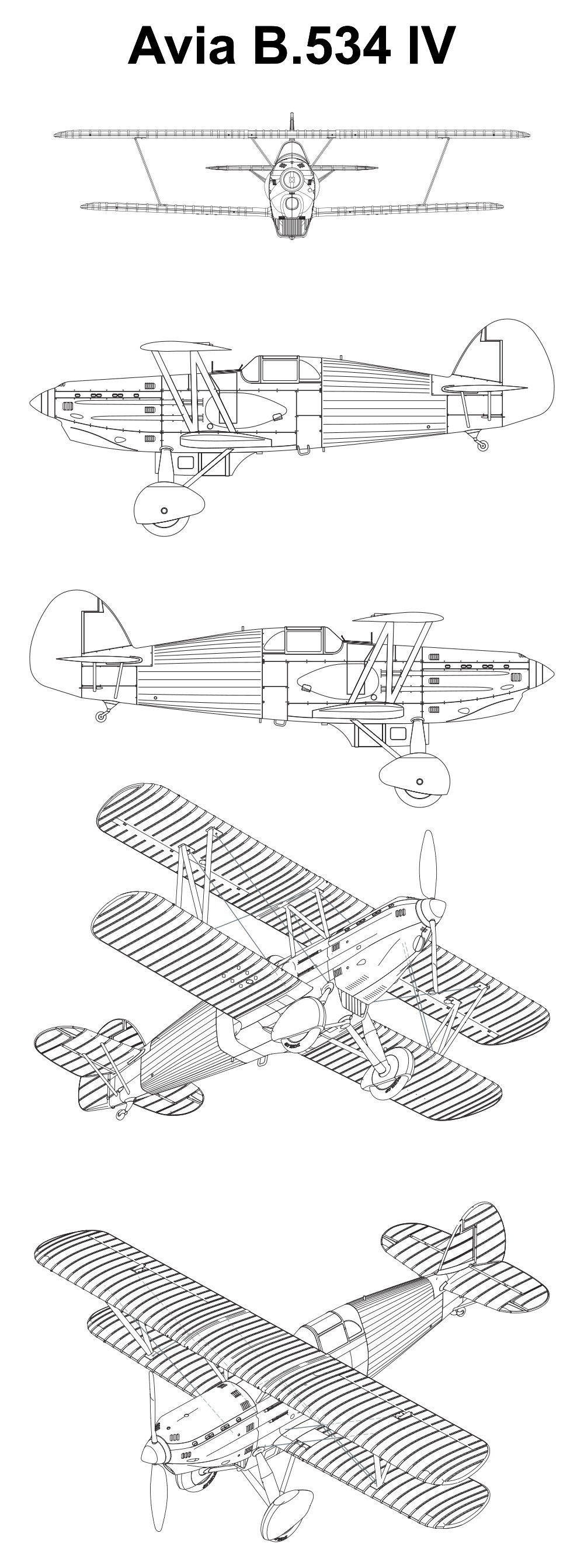 Avia B.534 IV Blueprint PDF SVG Vector File.