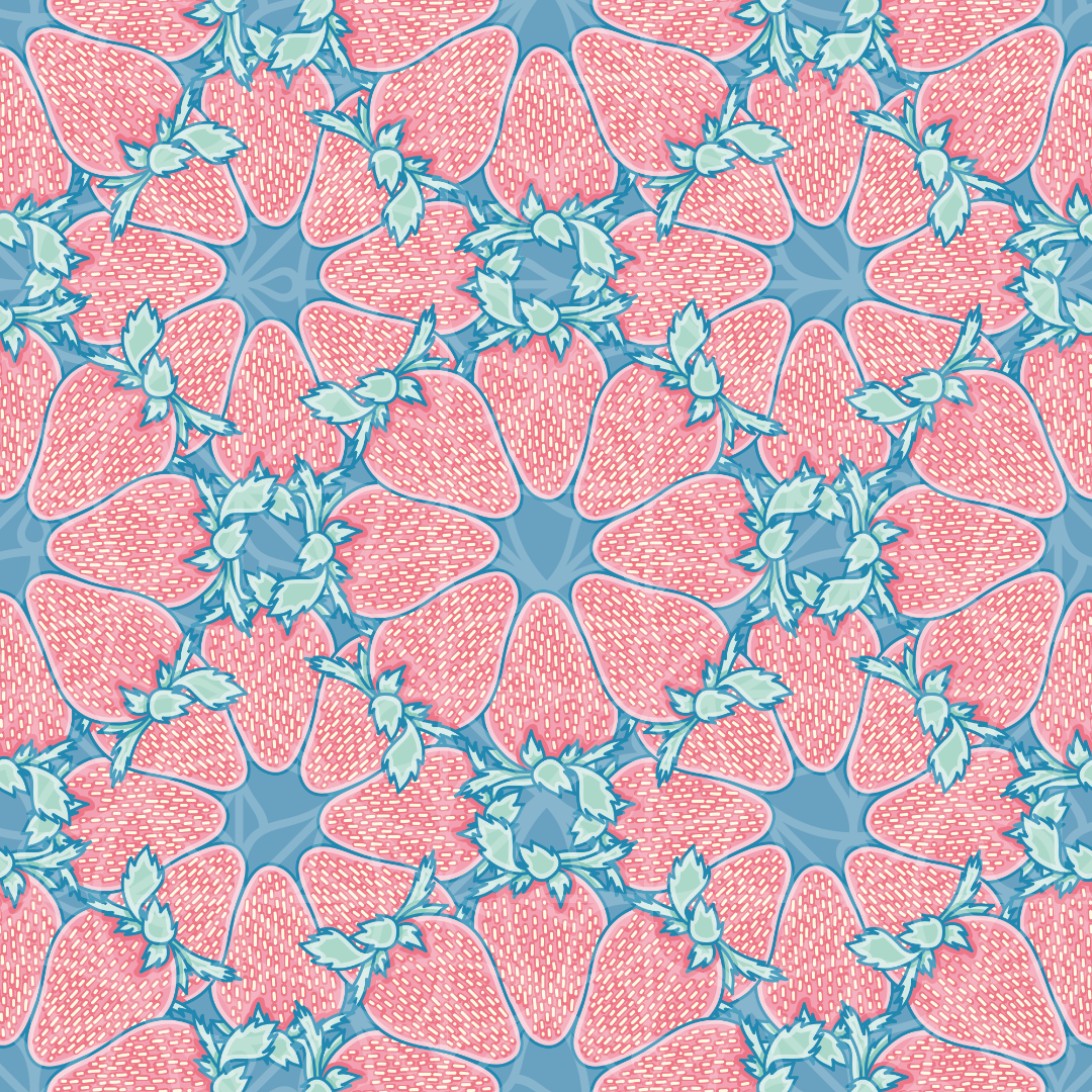 Strawberry medallions seamless illustration pattern. Sweet berry mandala vector background.