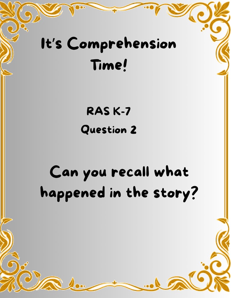 A single comprehension question from the RAS K‑6 collection, designed to support your child’s reading routine with simple, focused practice. Each page pairs with the Read Along Series videos and helps learners think about what they read, recall story events, and build early comprehension skills in a low‑pressure way.