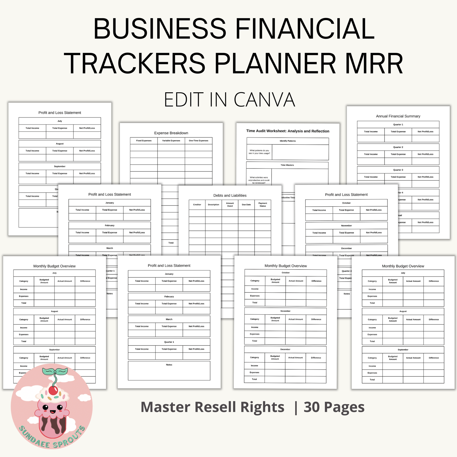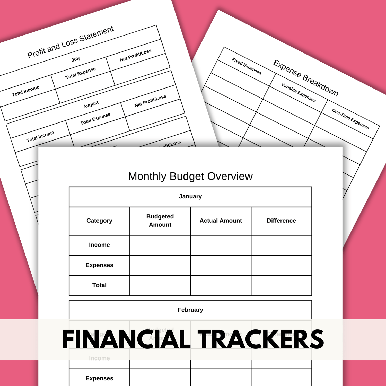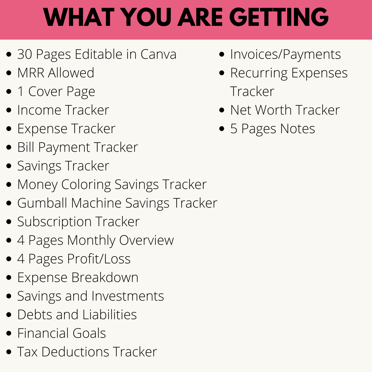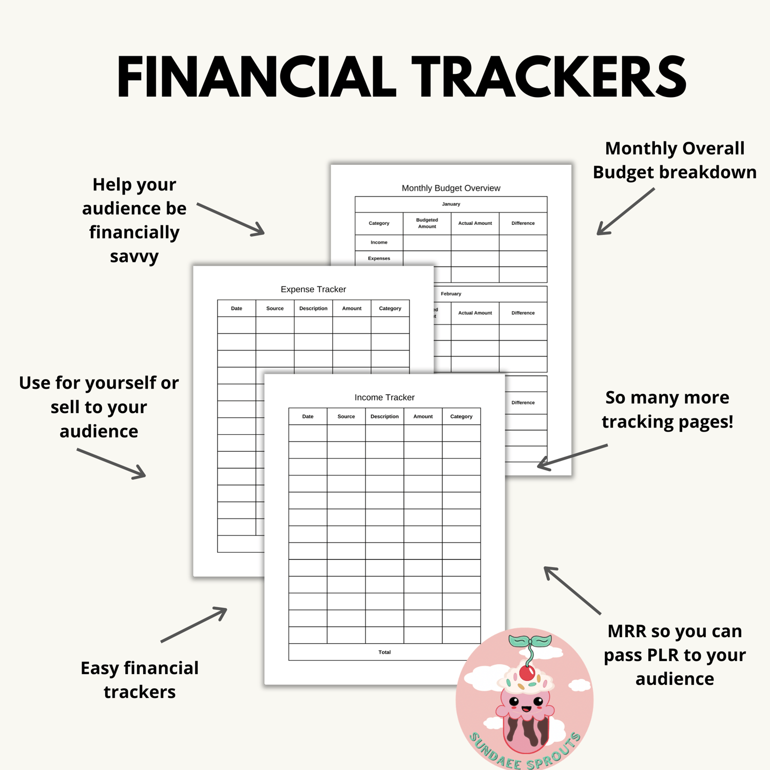A simply designed financial tracker and budgeting planner that's just waiting for your design to spruce it up! Use it for yourself or sell to your audience with a commercial use license. 30 pages of helpful trackers that can be sold as a planner or you can take individual pages to post on sites to sell as well.