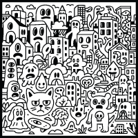 A high-quality PDF of a page from my coloring book; Doodle Worlds Book 1.