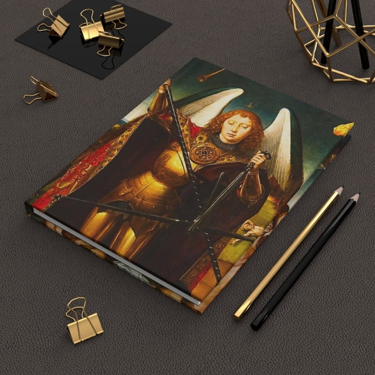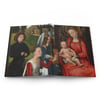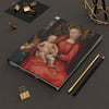 This hardcover notebook features The Virgin and Child with Saints Catherine of Alexandria and Barbara by theFlemish master Hans Memling (c. 1479–1489). Memling’s serene composition, suffused with warmth and quiet devotion, the Virgin’s calm gaze, the Child’s gentle gesture and the saints’ meditative presence embody the contemplative spirit of Late Gothic or Northern Renaissance art.