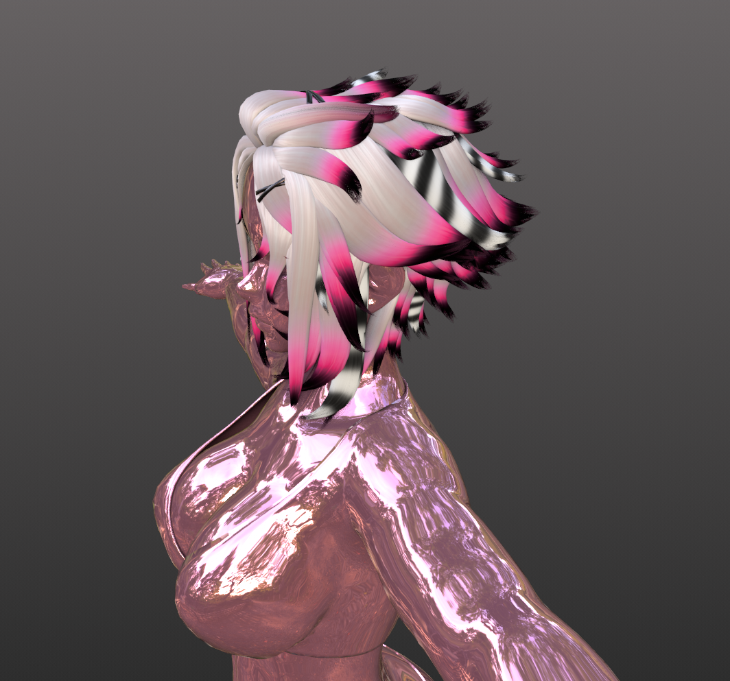 Rigged+ Weighted, 2 material slots :) use with Saikuras hair textures :) free to use on any VRC model free, paid, server free, nitro, and personal, (no public) no file sharing or redistributing , credit when used!2 VERSIONS:LOW POLY- 40,601 HIGH POLY-153,590 polys 110 BONES