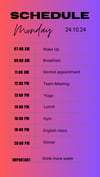 – Daily fitness schedule