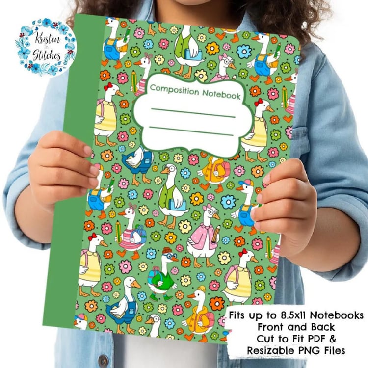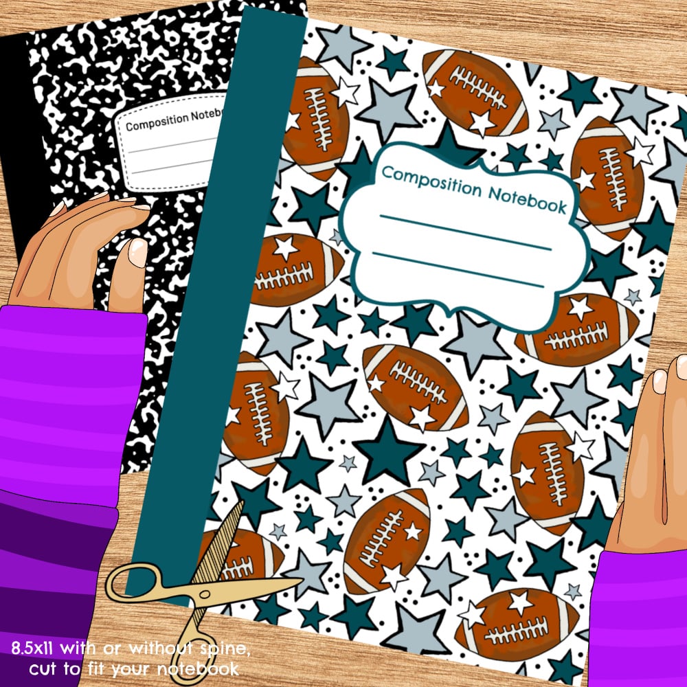 No more boring black and white composition books! This printable cover will make your notebook stand out! Size to fit any notebook up to 8.5x11- just print, cut and stick. Composition book measurements differ from brand to brand- you don't have to worry about sizing when you can cut it to fit perfectly.