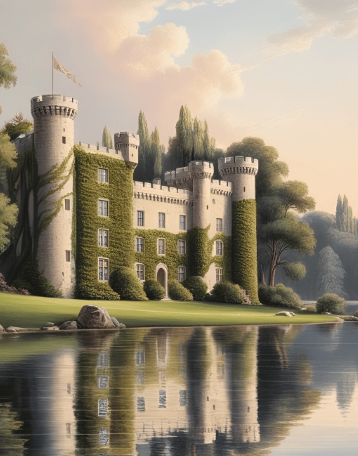 Castle, Pride, Unity, Sovereignty, Place of Hope, Forest landscape, Lake Landscape, Serene Wall Art, Beautiful Sky.