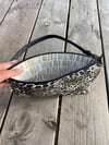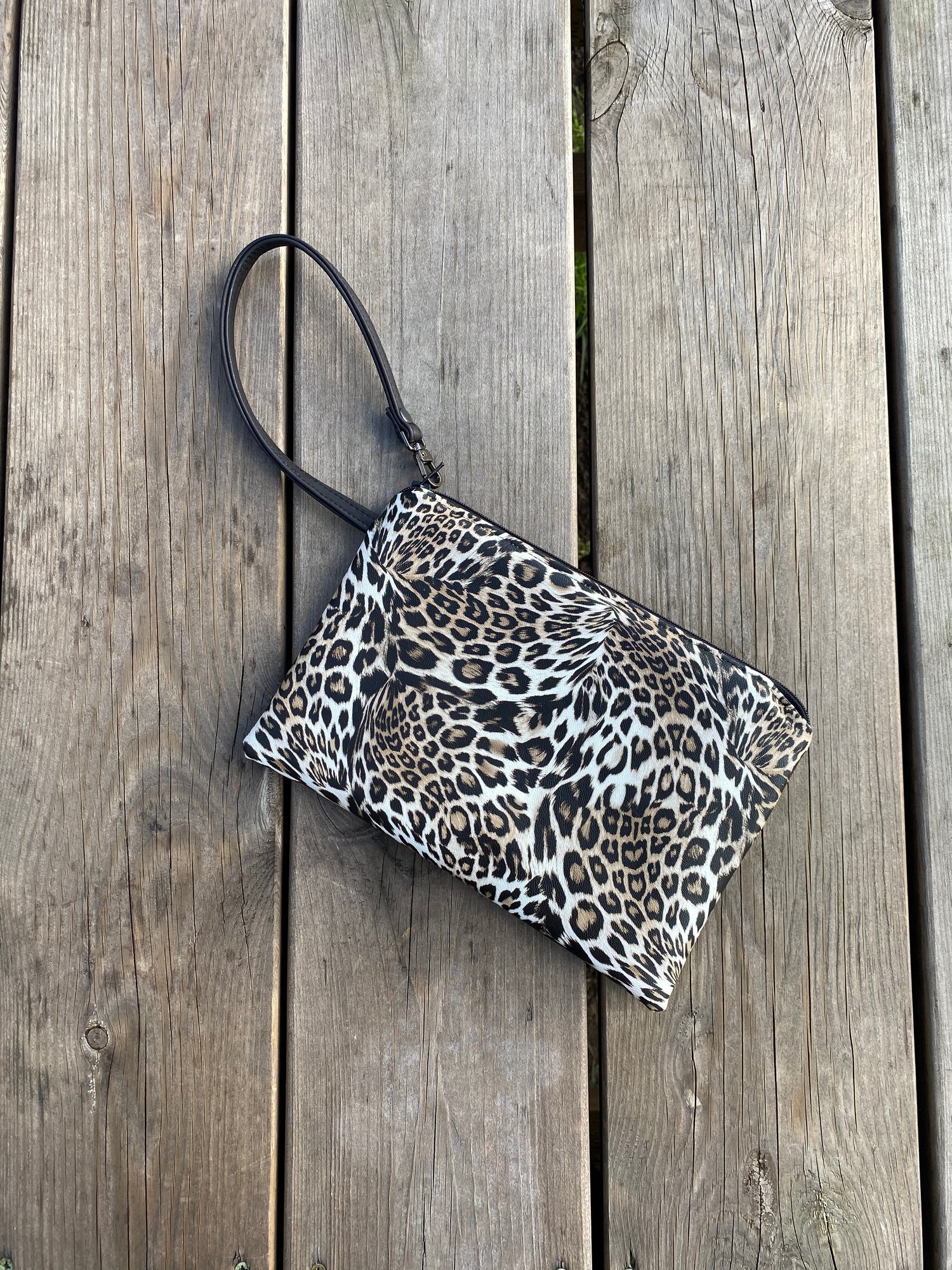 This faux leather wrist clutch is both stylish and functional. The bold print and smooth faux leather create an eye-catching accessory perfect for adding a pop of flair to any outfit.