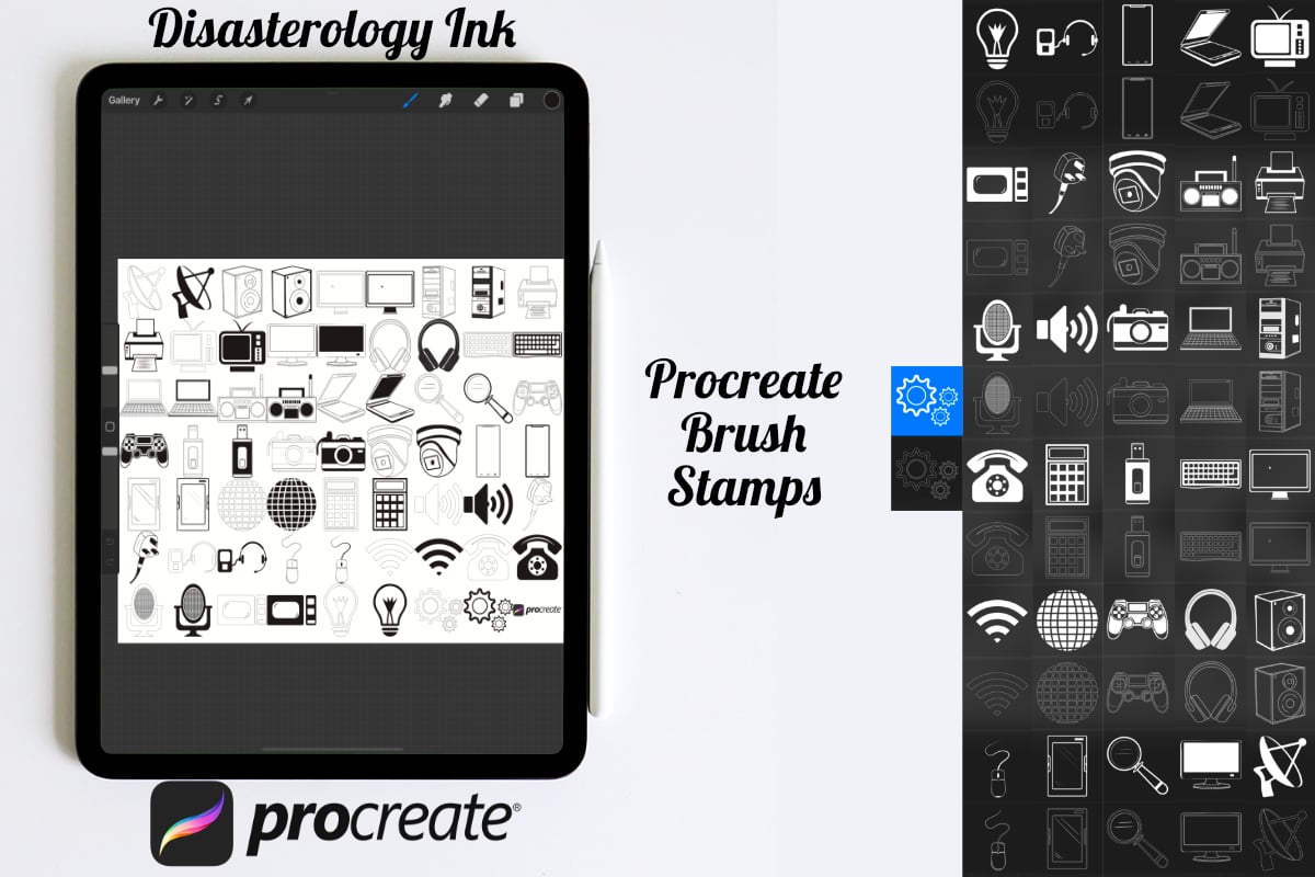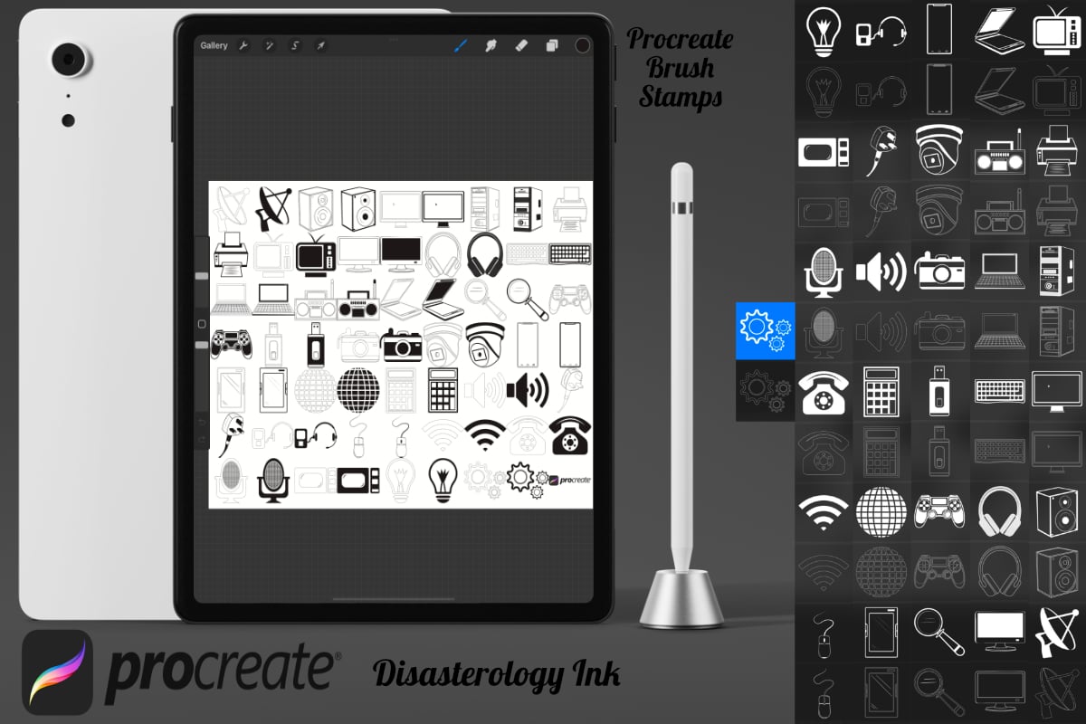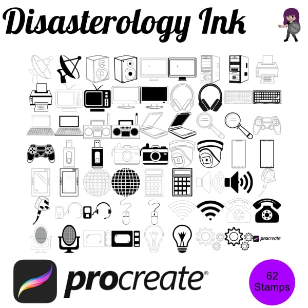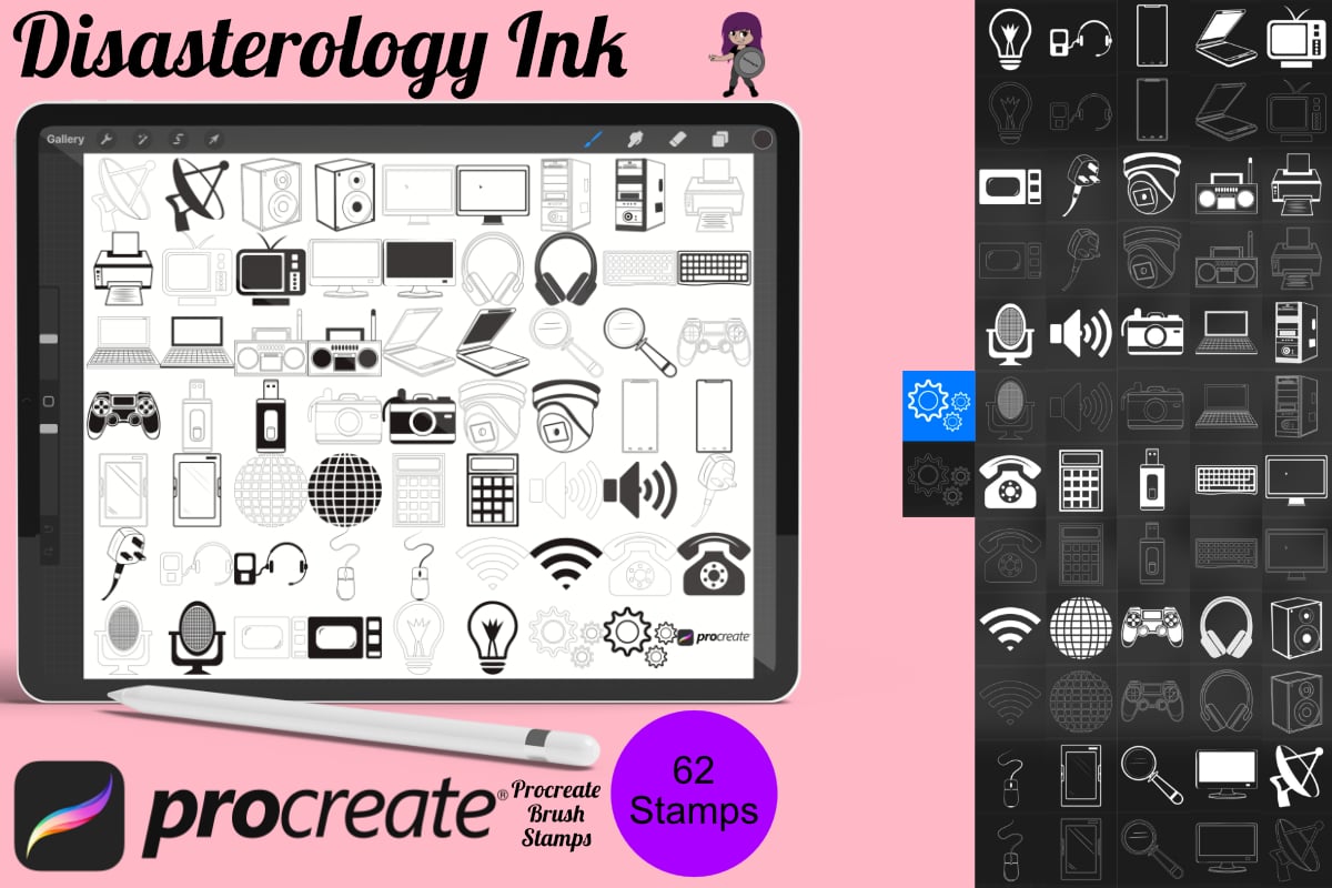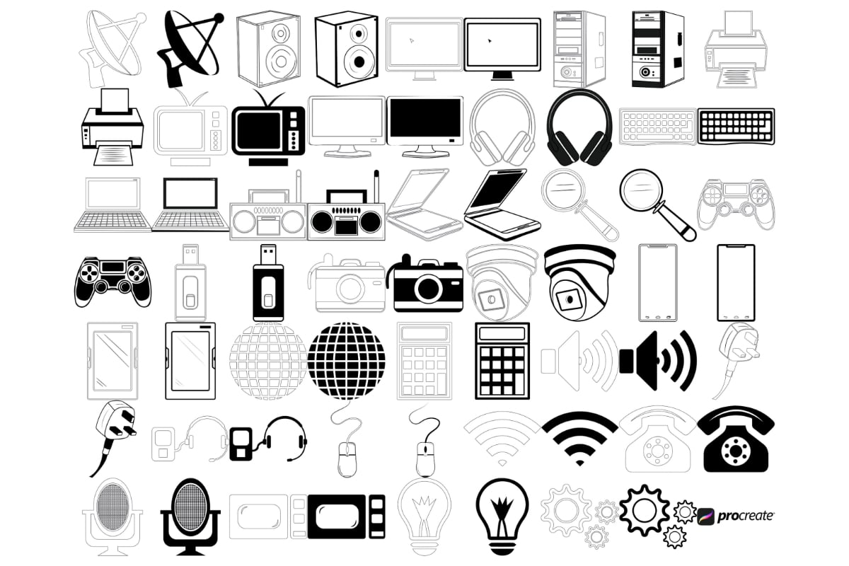 Gaming Computer Icons Set 1 Procreate Brush Stamps, 62 Game Icons