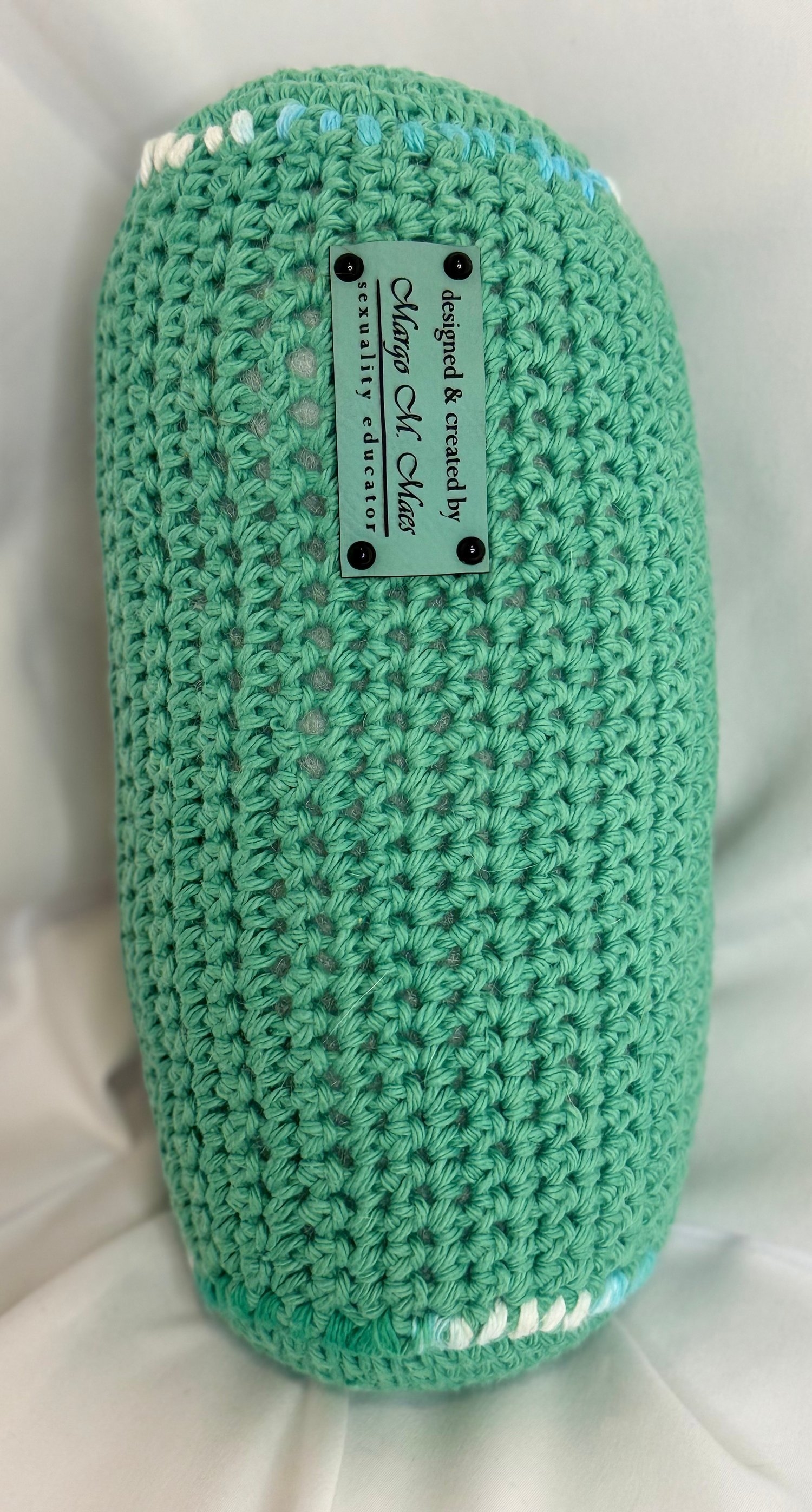 After lots of love and labor, I’m thrilled to finally offer my Crocheted Crotch Cushions™ for your sexuality education, advocacy, therapy, or clinical sessions. I worked to create a huggable cushion to be used to support inclusive sexuality education, help destigmatize our genitals, celebrate all parts, including the often-forgotten perineum and anus, while still being a cute, cuddly cushion that is durable and fun to toss around.