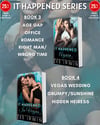 Book 1: It Happened (aka It Happened One Christmas) — A small-town girl collides with a big-city billionaire on the streets of Manhattan. Follow their attempt at a marriage of convenience romance that could turn into forever. Will she meet him at the altar and say ‘I do?’