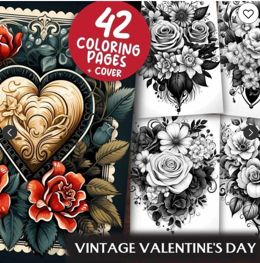 Travel back in time to an era of timeless romance with our digital coloring book featuring vintage-inspired love scenes and nostalgic motifs! From retro couples to classic Valentine's cards, each page invites you to rediscover the beauty and charm of yesteryear. Let your imagination wander as you add your own colors, capturing the timeless elegance and sentimental allure of Vintage Valentines Day in every stroke.