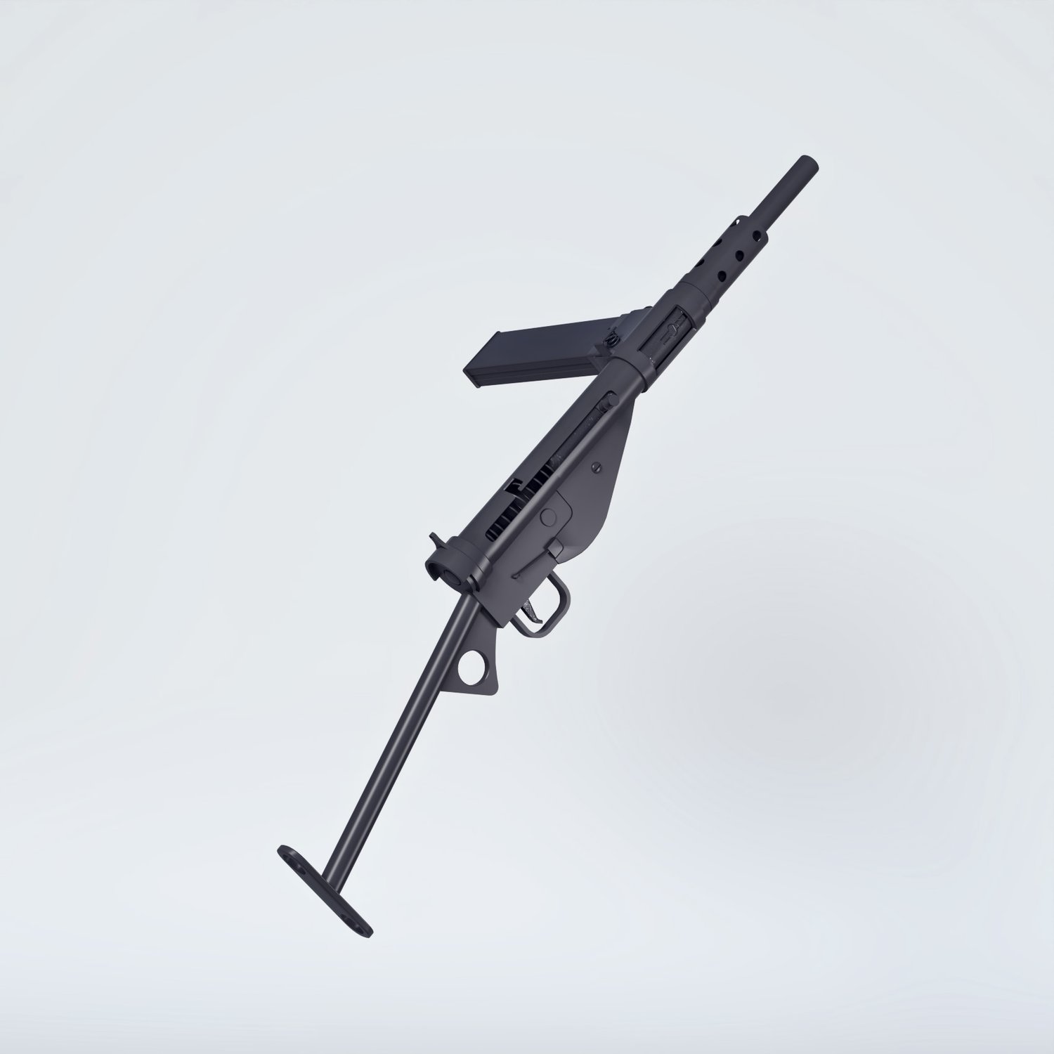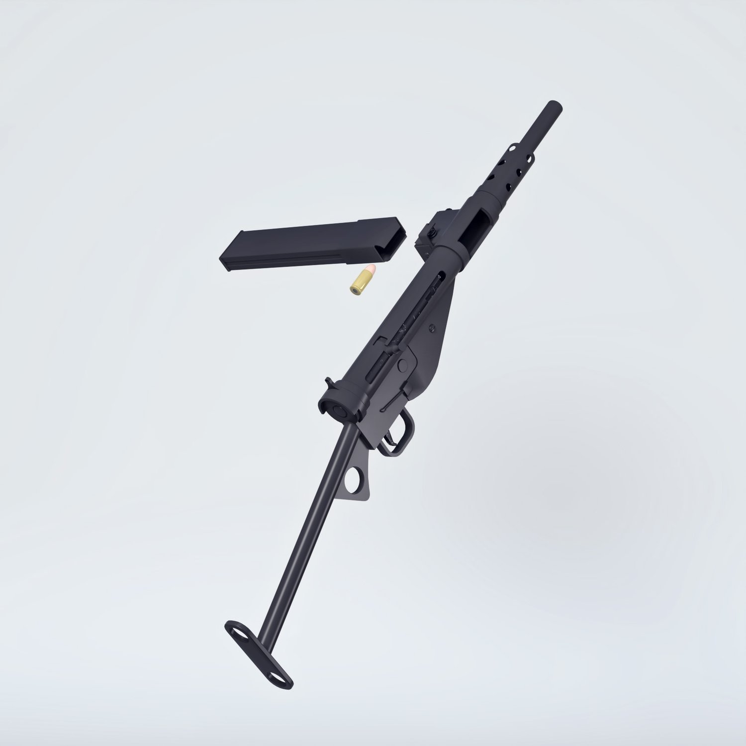 One of the first submachine guns made en masse, also one of the cheapest. Developed during the WW2 to supply a cheap pistol caliber automatic weapon for allies soldiers. Simple, cheap, but effective. The prop is rigged and converted for use with DAZ. Trigger, mag bolt etc also rigged for more realistic pictures.