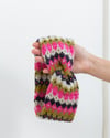 We all have those little scrappy yarns and wondering what to do with them. This headband is a perfect scrap yarn project, it uses four different colors but can be easily modified to use more or less colors. The headband is knitted in the round and the knot is finally finished by sewing. A video tutorial on sewing the knot is provided. The colorwork pattern is quite easy and this would perfect pattern for first stranded colorwork project.