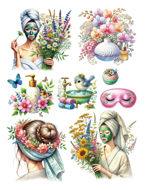SPA DAY EPHEMERA TO CUT AND COLLAGE BOOK