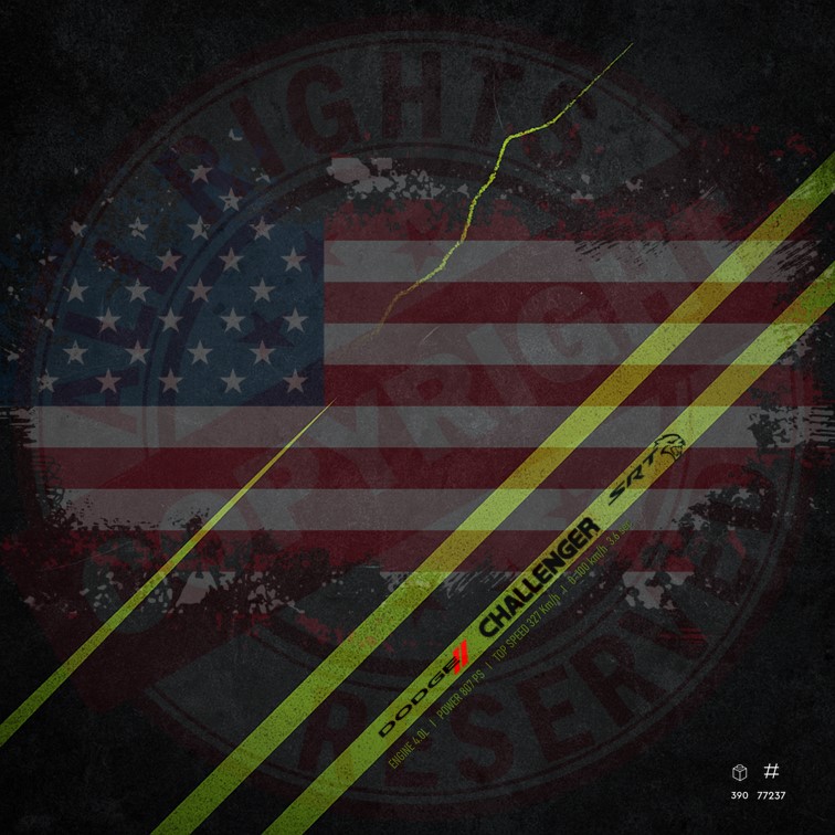 - Rayures vertes fluo avec marquage Dodge Challenger