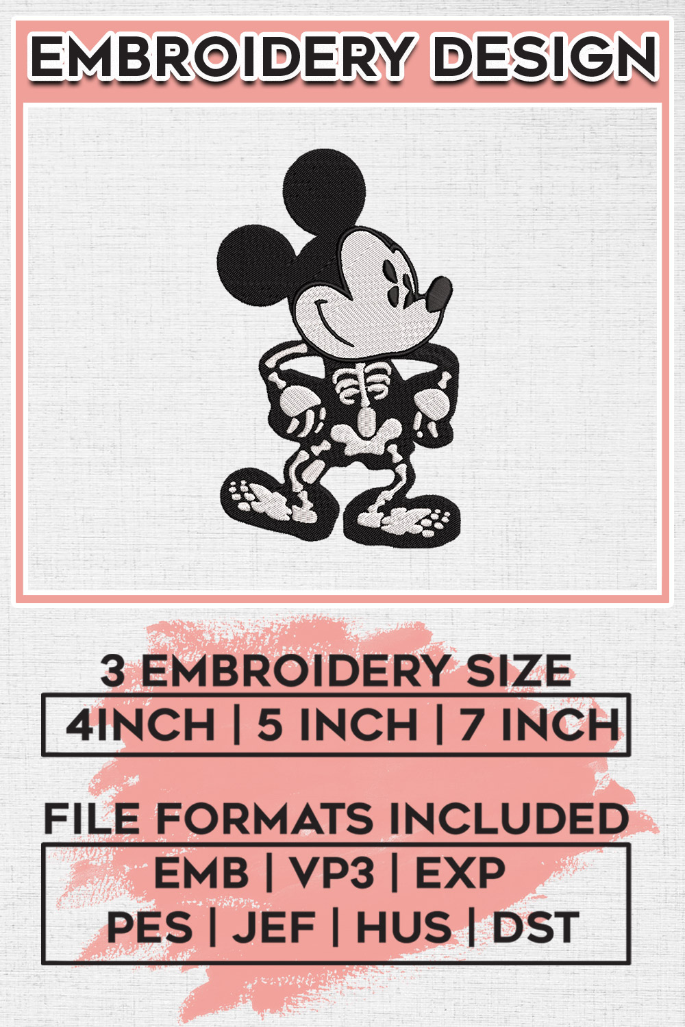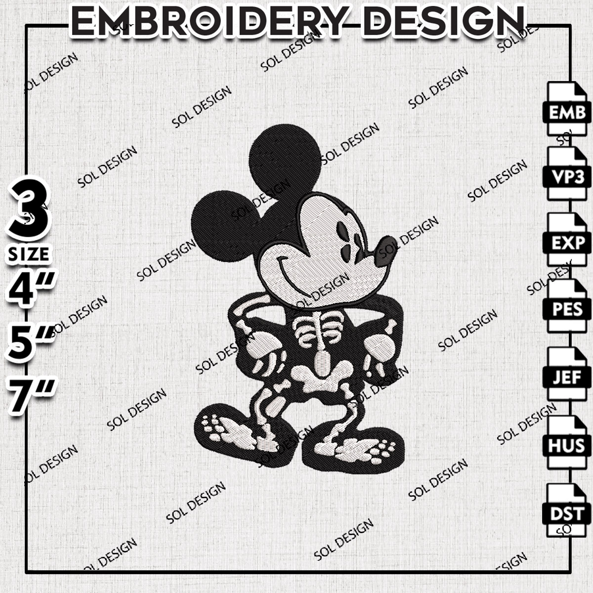 Halloween Mickey Mouse Skeleton Embroidery Designs, Halloween Embroidery Files, Disney Movie Embroidery, Spooky Season Machine Embroidery Design, Digital Download