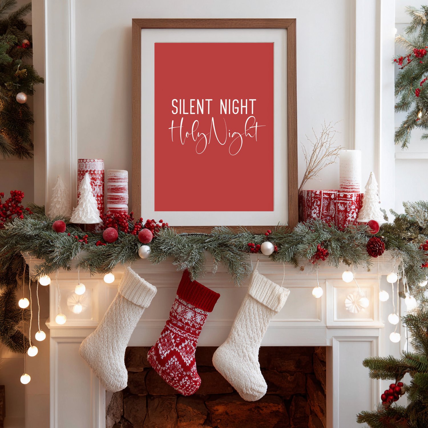Silent Night Holy Night Christmas Wall Art Printable | Christian Christmas Decor | Minimalist Holiday Scripture Print (Digital Download)
