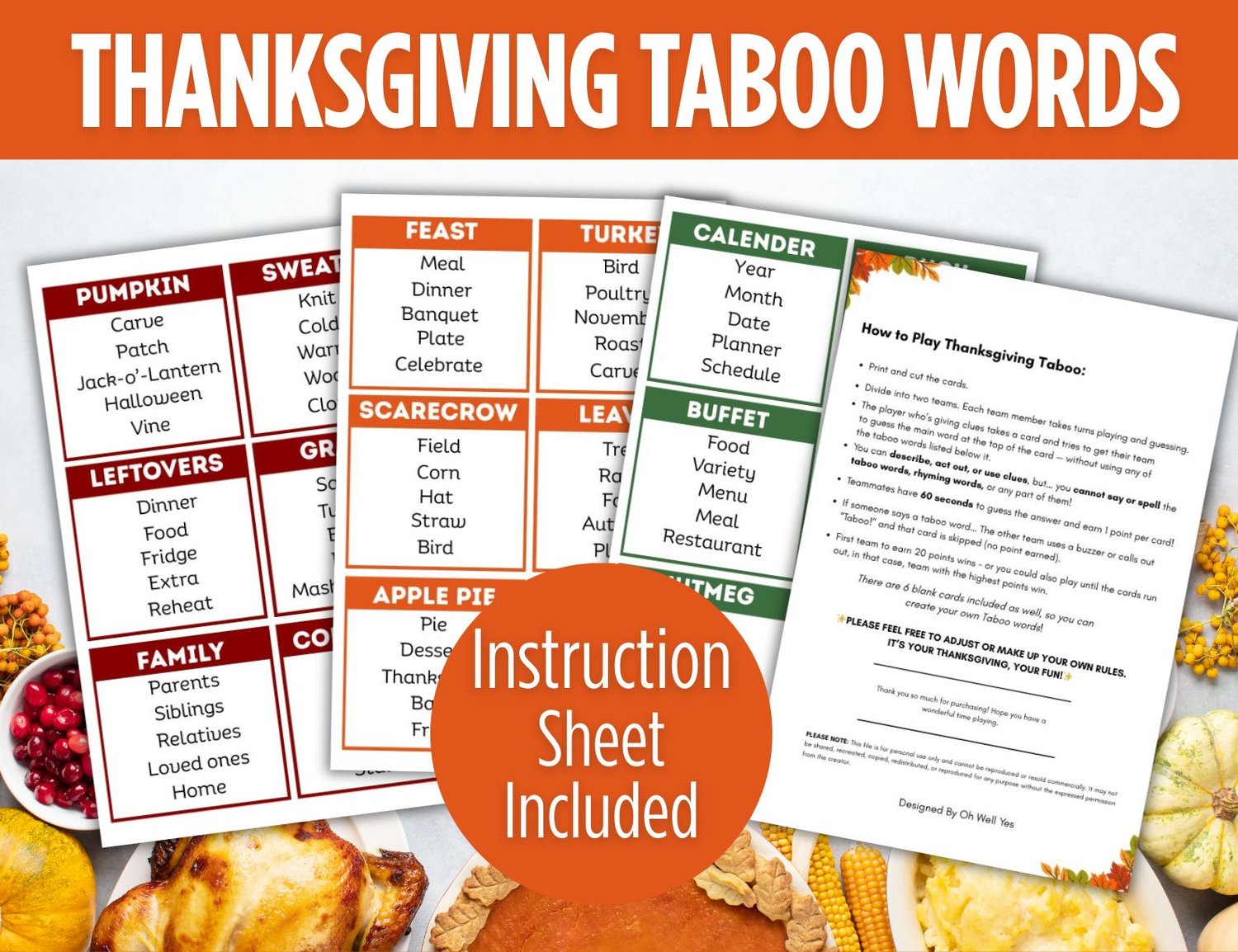 Play this festive and exciting group Thanksgiving-themed game - The Thanksgiving Taboo Word Edition