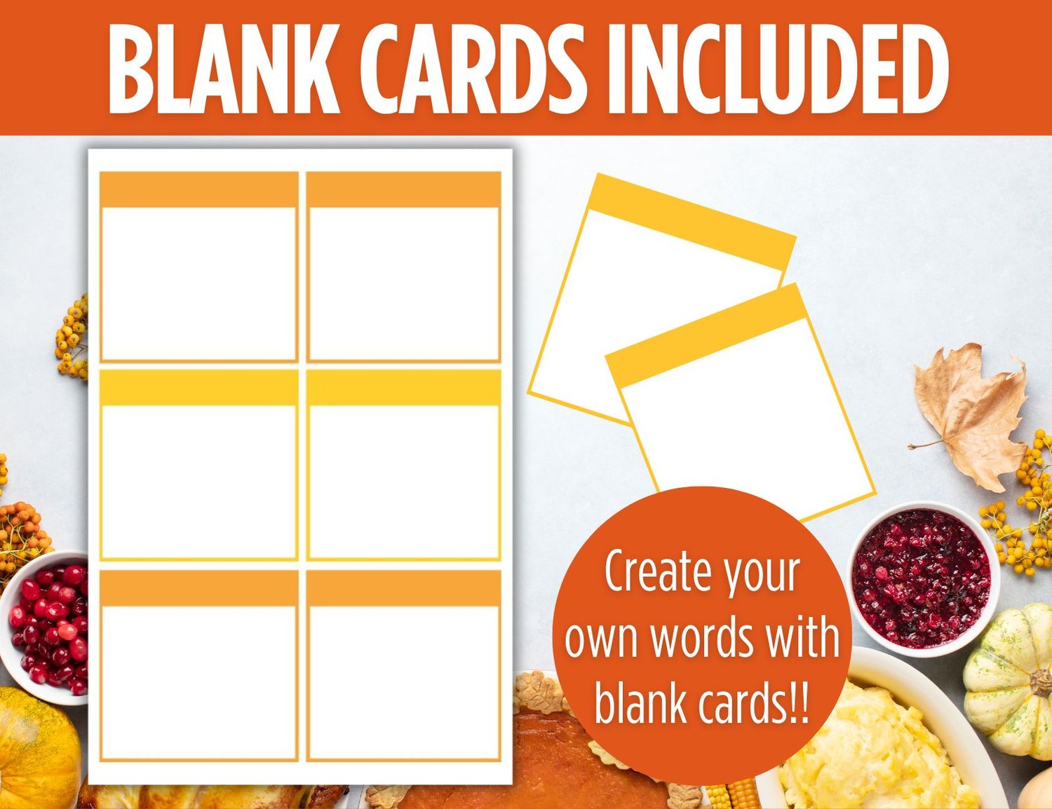 👉 1 Page of Blank Cards – Add your own funny, festive, or themed words!