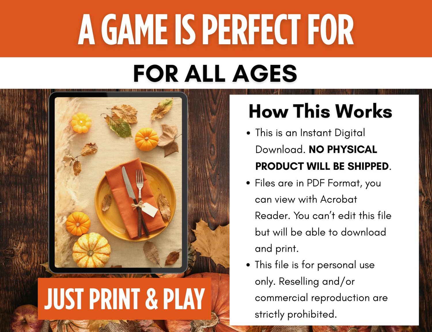 Perfect for Thanksgiving dinner, school activities, youth groups, Friendsgiving, and holiday celebrations.