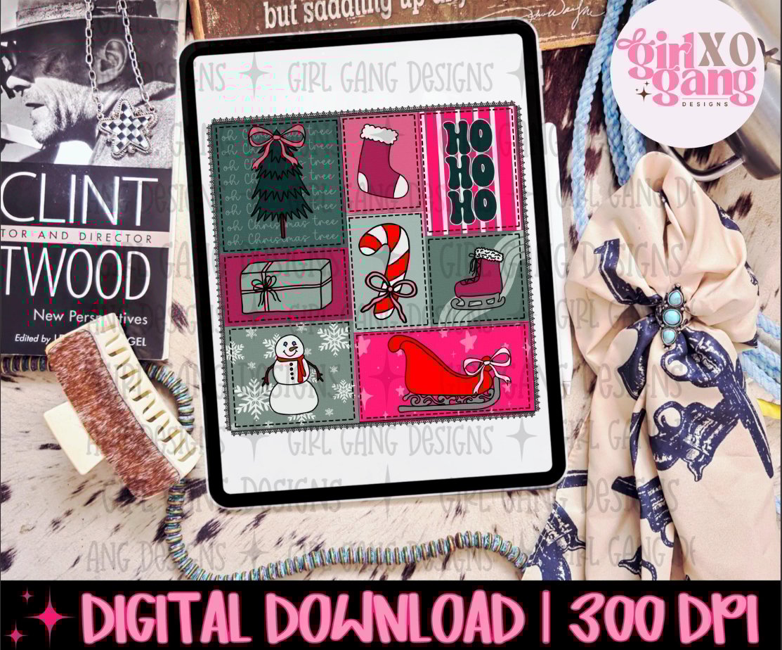 Christmas patchwork png, Faux patch embroidery png, Holiday patchwork graphic design