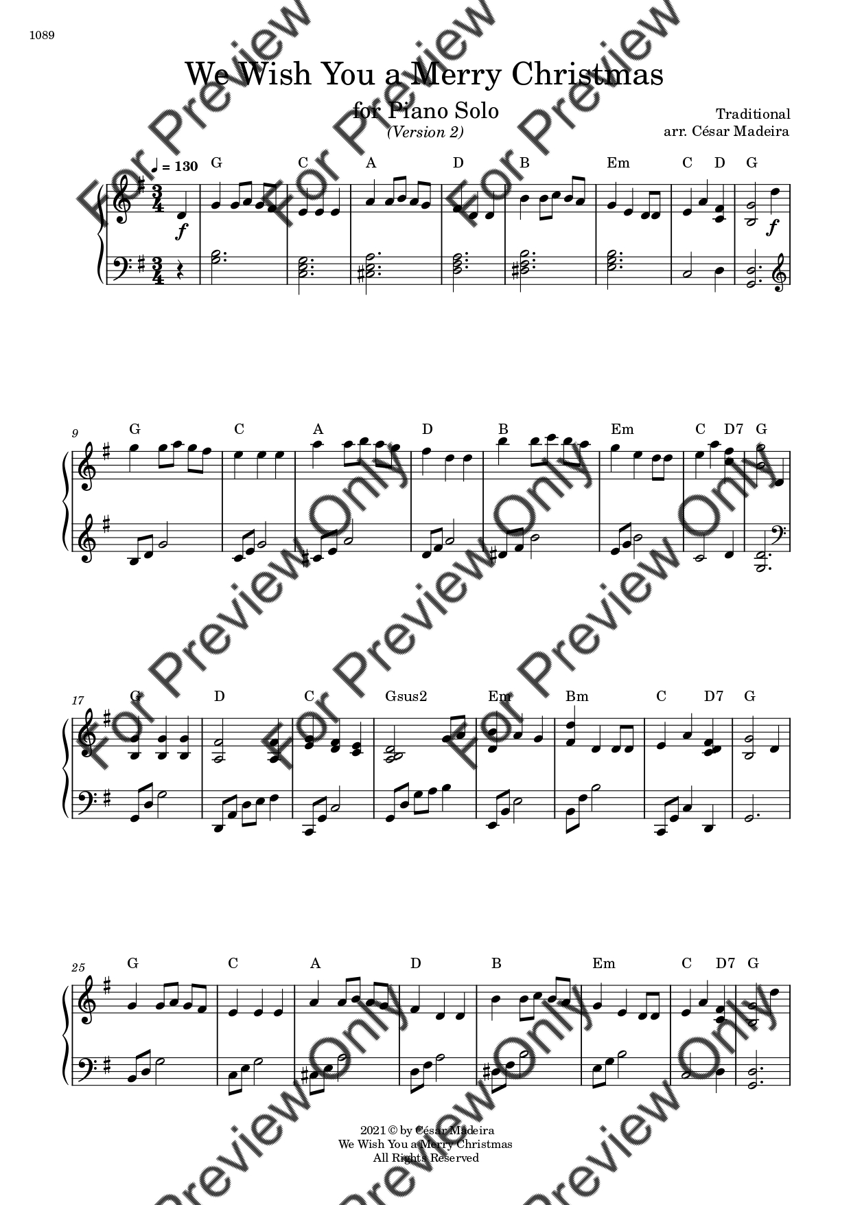 We Wish You A Merry Christmas. Arrangement for Piano Solo. With Full Score. Have fun!