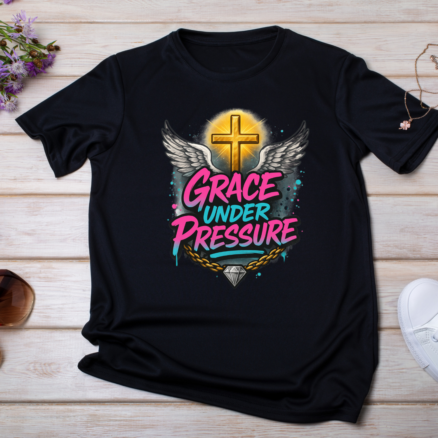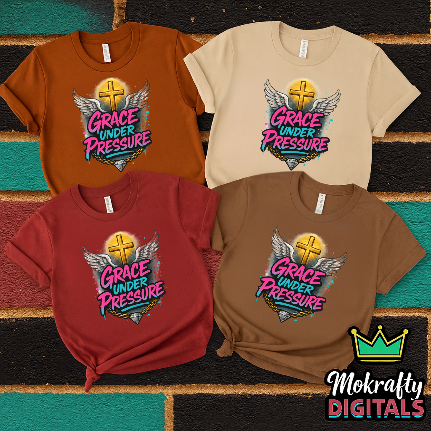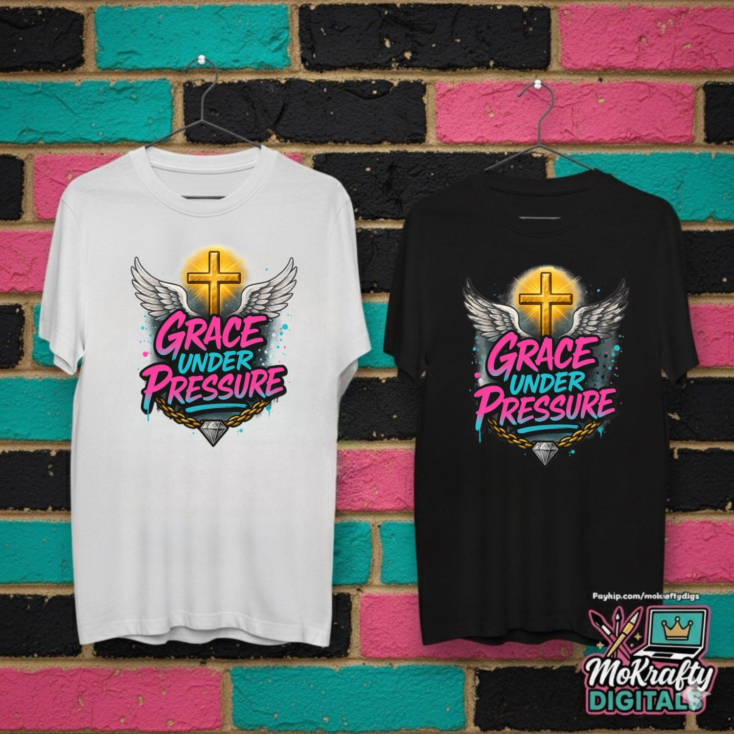 This isn't just a design—it's a testament to faith and strength. Our "Grace Under Pressure" PNG combines a bold, modern graphic style with powerful Christian symbols. Featuring a radiant cross, angelic wings, and a strong diamond, this design is a beautiful reminder that with faith, you can handle any challenge with grace. Perfect for creating uplifting t-shirts, hoodies, and gifts.