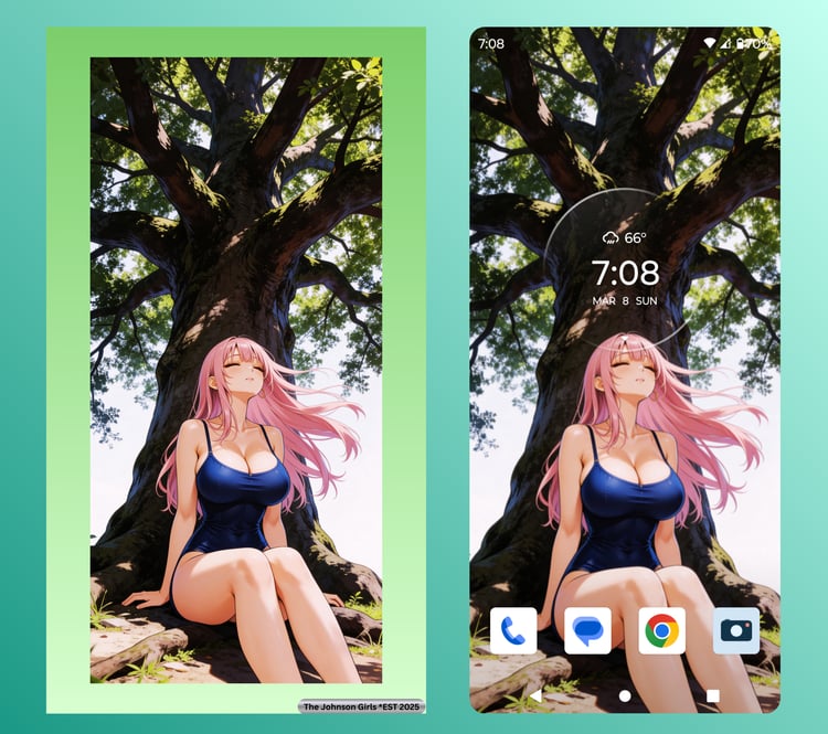 Real-device tested for perfect fit (no zoom/crop issues) — icons moved, widgets set for clean view.