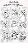 Inside, you’ll find 35 adorable coloring pages filled with friendly animals, playful scenes, and soft kawaii-style characters.