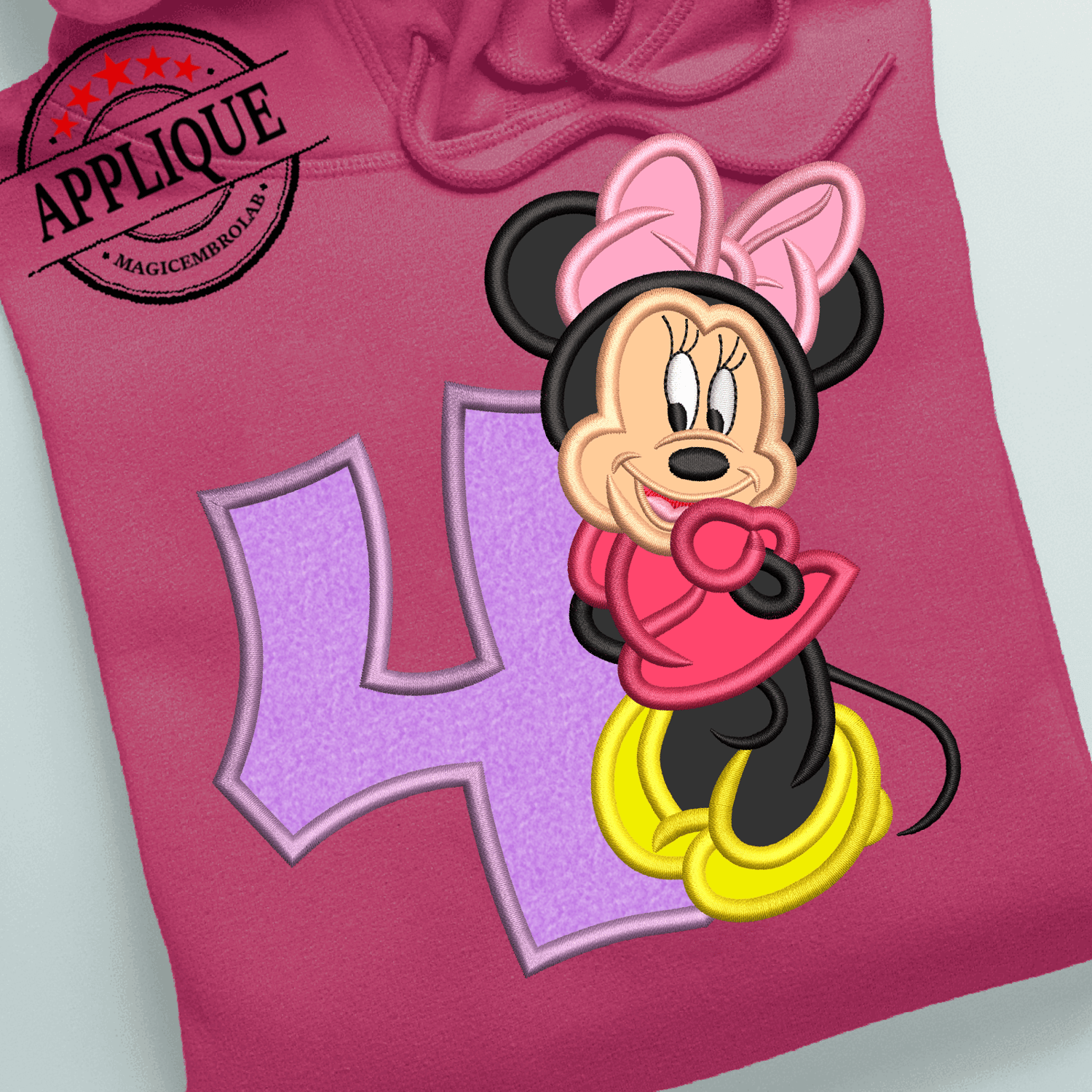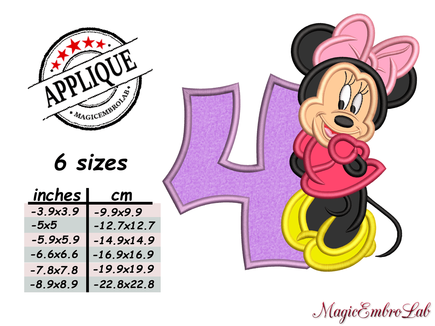 Minnie Mouse APPLIQUE, Minnie Fourth Birthday, 6 sizes, Instant Download