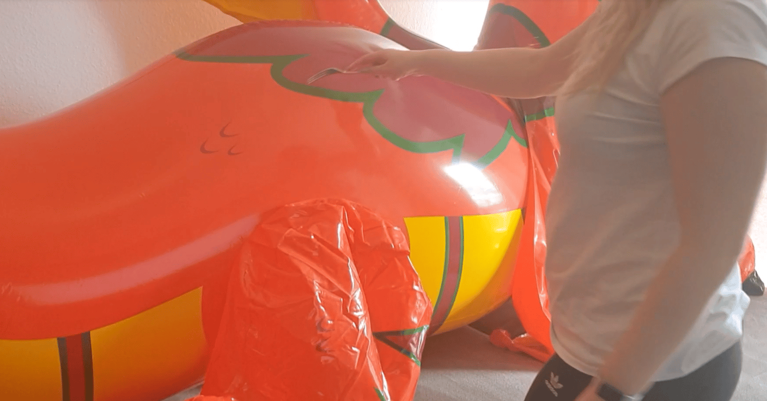 riding & bouncing my GIANT dragon. Finally popping him by fork