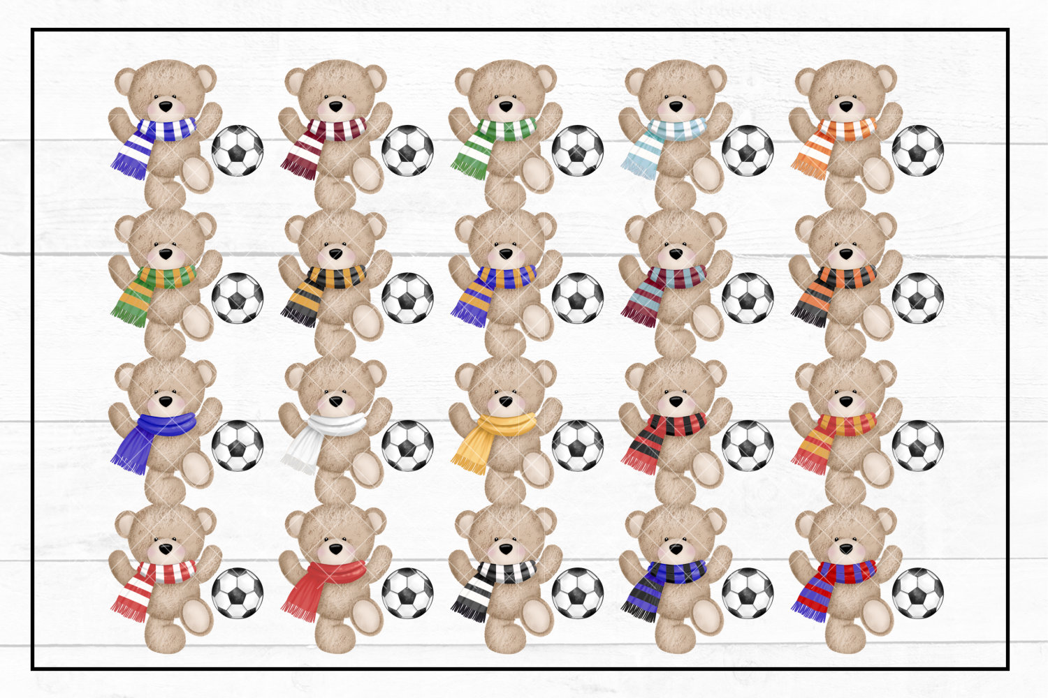 TEDDY BEAR FOOTBALLERS - This listing is for Set of 20 Teddy Bear Footballers wearing different scarves representing their favourite teams. Use with or without the grass included. All high resolution PNG files and all suitable for sublimation and print. Thanks as always for looking and if you have any questions please get in touch.